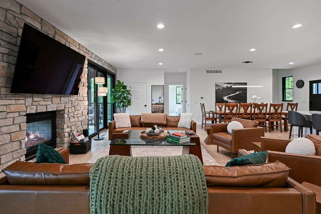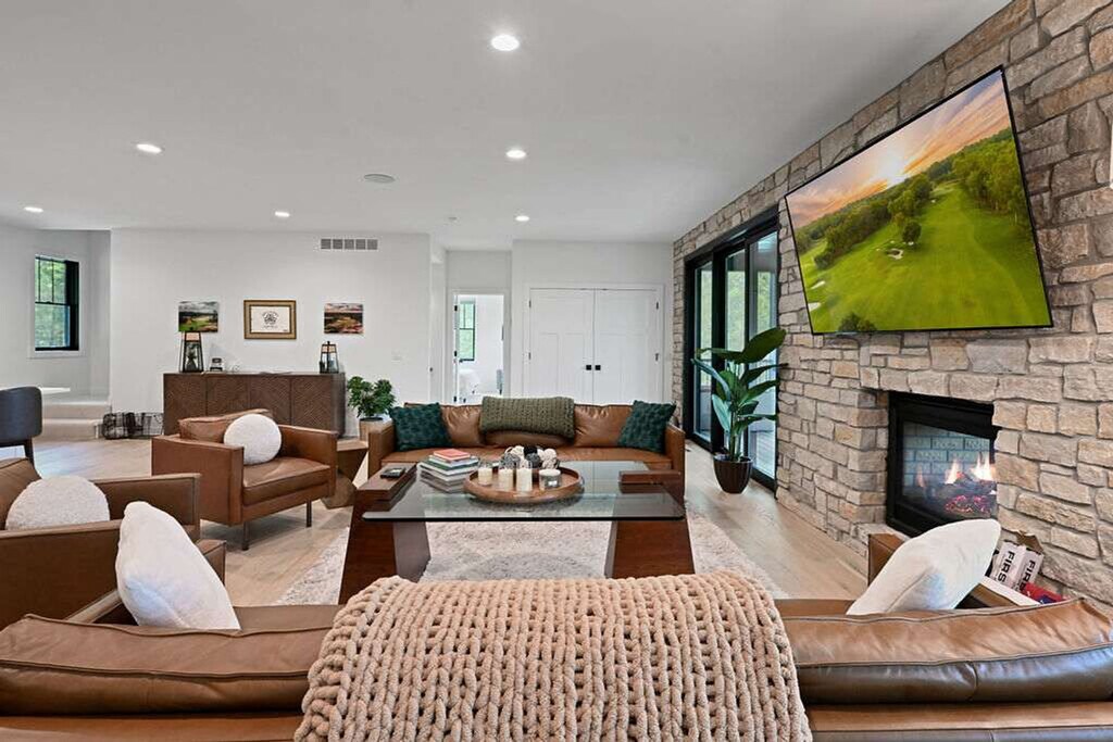 Feel at home in Archer Place, a luxury retreat nestled on 9 private wooded acres at 1678 Archer Ave, Nekoosa, WI. This newly built 6-bedroom, 6-bathroom lodge offers the ultimate in privacy, recreation, and relaxation. This home offers a fully stocked chef’s kitchen, in-unit laundry, and an expansive game room featuring shuffleboard, darts, arcade games, board games, and a pool table. Set the mood with the indoor/outdoor fireplace and enjoy music throughout the home with the full Sonos Bluetooth sound system. For outdoor enjoyment, there is a private hot tub, BBQ grill, patio, balcony, 2,100 sq ft putting green, and a backyard putt-putt. Exclusive lake access is available for swimming, kayaking, or fishing, and there are two private piers for guests with boats or jet skis. Located just 2 minutes from Sand Valley Golf Resort, Archer Place is at the heart of one of the Midwest’s premier golf destinations. The lodge sits on 9 private acres with scenic walking trails and is a short drive from the town of Nekoosa and Wisconsin Rapids, where you'll find restaurants, grocery stores, and local shops. Quiet hours are between 10 PM and 8 AM. No parties or events are allowed, and there is a $1,000 fine for violations. Smoking is not allowed inside the apartment, and there is a $500 fine for violations. Tampering with noise monitors or cameras is prohibited and will result in a $500 fine. Guests are liable for any damage to the property and should report any damages noticed at check-in. Registration Number: STR24-101 [SI]