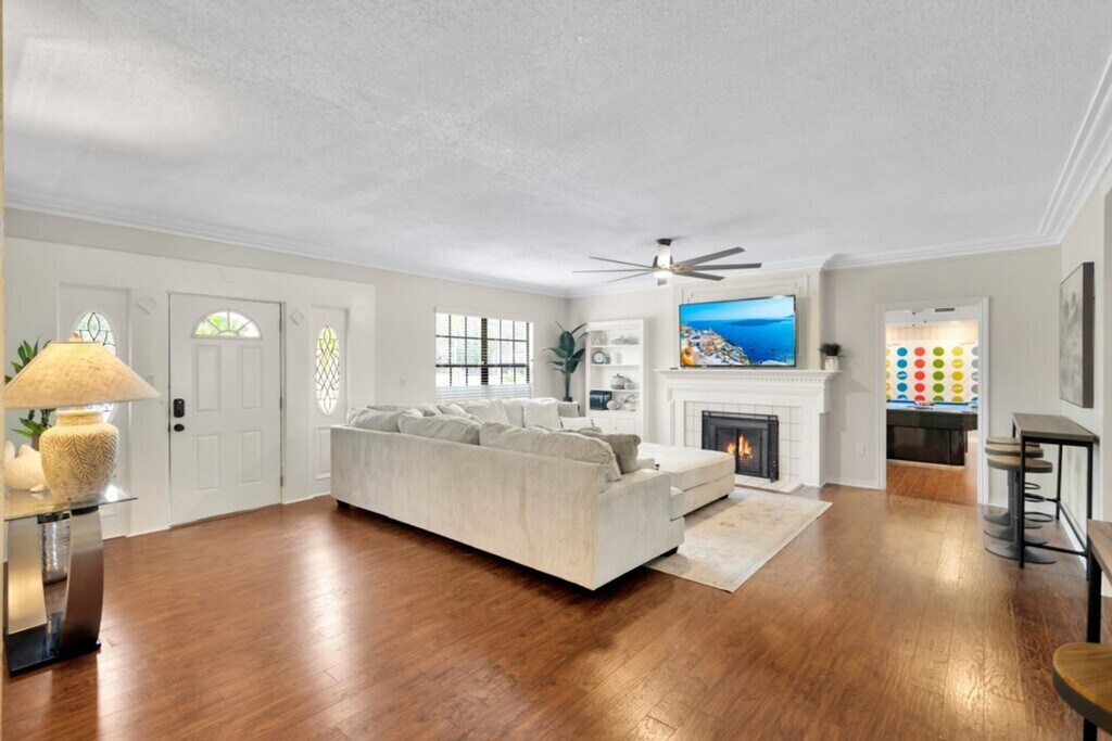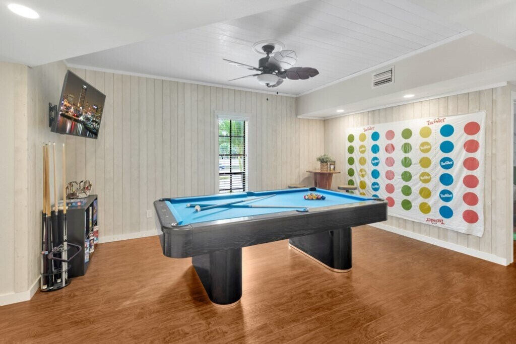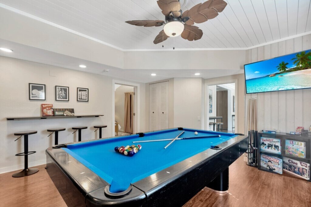 Welcome to Villa Valentino, a luxurious 4,700 sq. ft. 8-bedroom mansion nestled on a 1/2 acre lot, just 10 minutes from Honeymoon Island State Park. This exquisite retreat offers a beautiful backyard oasis with a heated pool and is within walking distance to downtown and top-rated restaurants, making it the perfect escape for families or large groups. This expansive multi-level villa features 8 bedrooms and 7 bathrooms, a formal dining room with seating for 12, a spacious family room with a fireplace, and a game room with a Foosball table and a billiards table. The large Chef's Kitchen is equipped with stainless-steel appliances and fully stocked with everything you may need. Enjoy the private fully fenced heated pool, a firepit area, and an outdoor dining area with a BBQ grill. The villa also includes a balcony on the second floor, a covered porch on the first floor, and a standalone laundry building. High-speed WiFi is available throughout, and TVs in every room offer top streaming services. Beach and outdoor essentials are provided, and the villa is equipped with amenities for children, including a baby monitor, high chair, toys, books, travel cot, baby gates, and kids’ tableware. Free parking is available for up to 10 vehicles. The villa is equipped with organic mosquito control, ensuring a bug-free outdoor space without the need for repellent. Located in the expanded golf cart district of Old Palm Harbor, Villa Valentino is surrounded by nature and outdoor attractions such as Caladesi Island State Park, Honeymoon Island State Park, and Wall Springs Park. Enjoy birdwatching, biking, kayaking, and more. Clearwater Beach, ranked as TripAdvisor’s #1 Beach in the USA, is nearby for jet skiing, parasailing, and paddleboarding. Explore cultural sites in nearby St. Pete, including the Salvador Dalí Museum and the Florida Holocaust Museum. No parties or events are allowed. Check-in time is 4:00 PM and check-out time is 11:00 AM. Self check-in is available with keypad access. A copy of your ID (front and back) matching the reservation name is required upon booking confirmation. The villa is work-from-home ready with high-speed WiFi throughout. [SI]