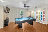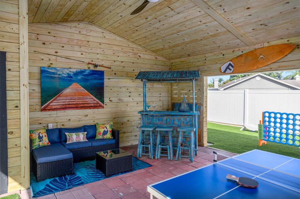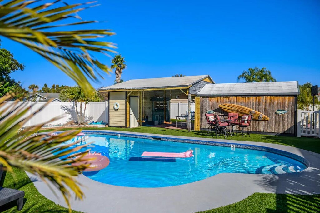 The advertised rate of $18,165/month is the lowest available price, based on a 30 day(s) stay with a move-in date of August 16, 2026. Rates vary depending on the duration of stay, season, and other parameters. For exact pricing and additional pricing components, please visit our website and enter your desired move-in and move-out dates. The rate is applicable when billed upfront; it can be higher if billed in multiple payments. Experience elevated luxury and feel at home in this 8-bedroom Palm Harbor estate, featuring 5 en-suite bathrooms and 4,700 sq. ft. of space on a private half-acre. This expansive estate offers resort-style outdoor living and multiple entertainment zones. Each bedroom is designed for comfort, featuring plush memory foam mattresses and fresh cotton linens. The fully stocked chef’s kitchen includes a full-size refrigerator, oven, stovetop, microwave, stainless steel appliances, dishwasher, gourmet knife set, blender, toaster, kettle, Keurig coffee machine, pots, pans, utensils, plates, silverware, mugs, and glassware. Entertainment and relaxation options include a heated in-ground pool, a fully fenced private backyard, hammock lounging, outdoor dining and grill, a fire pit, a dedicated game room, a foosball table, a pool table with HDTV, and multiple Smart TVs with streaming services throughout the home. For guests traveling with children, a high chair, baby monitor, travel cot (52” x 28”), baby gates, children’s toys and books, and kids’ tableware are provided. Beach and outdoor essentials include eight foldable beach chairs, pool towels, floats, an umbrella, and a cooler. Free parking is available for up to 10 cars. Located just 10 minutes from Honeymoon Island, this home is in one of the best areas for nature lovers, beachgoers, and family fun. Nearby attractions include Honeymoon Island State Park, Caladesi Island State Park, Wall Springs Park, Florida Botanical Gardens, Clearwater Beach, Dunedin Causeway, Busch Gardens Tampa, Clearwater Marine Aquarium, Downtown Dunedin, St. Pete Pier, Salvador Dalí Museum, and the Florida Holocaust Museum. Restaurants, grocery stores, coffee shops, and boutiques are all a short drive away. Florida’s tropical climate can occasionally invite small bugs, especially during the warmer months or after rain. While a high standard of cleanliness is upheld, it is recommended to keep doors and windows closed when not in use and bring insect repellent if you're sensitive to insects. [SI]