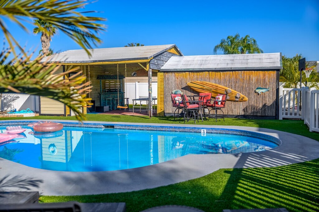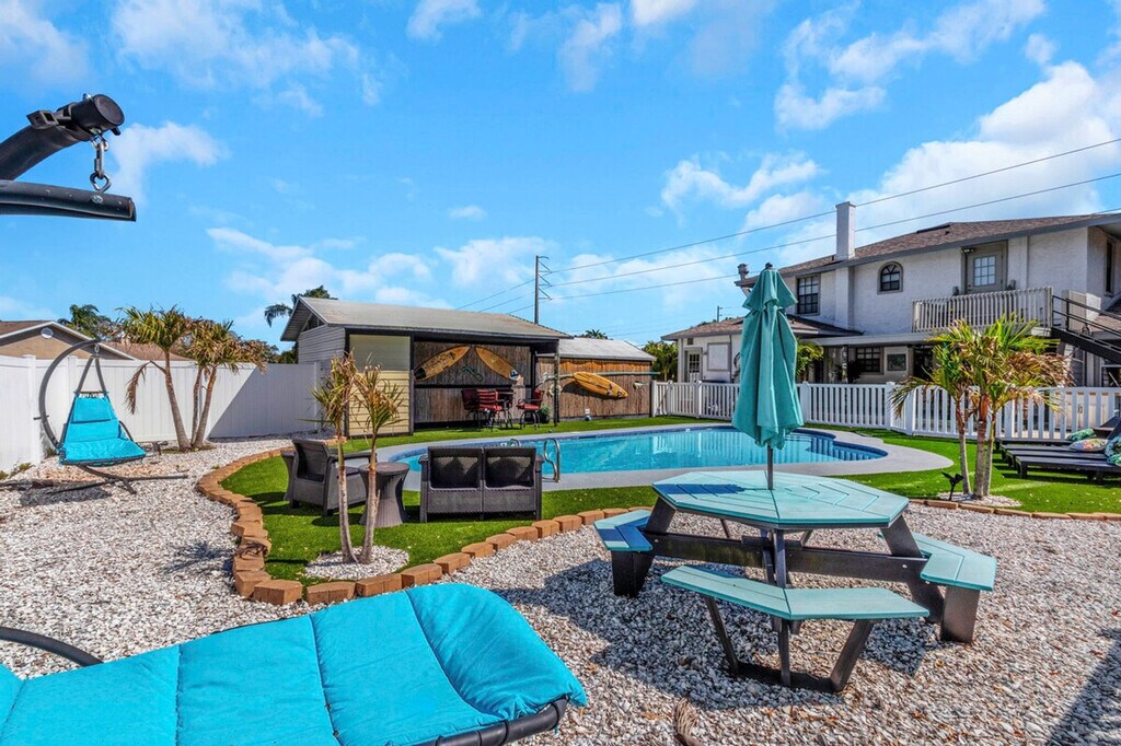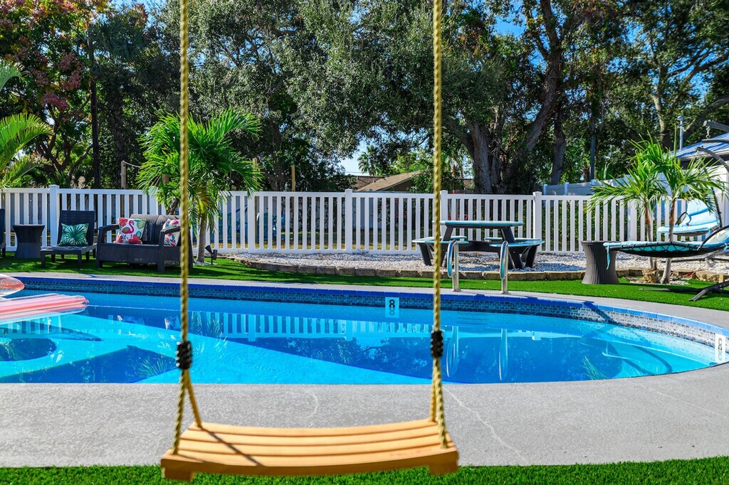 The advertised rate of $28,287/month is the lowest available price, based on a 1 month(s) stay with a move-in date of September 8, 2026. Rates vary depending on the duration of stay, season, and other parameters. For exact pricing and additional pricing components, please visit our website and enter your desired move-in and move-out dates. The rate is applicable when billed upfront; it can be higher if billed in multiple payments. Experience elevated luxury and feel at home in this 8-bedroom Palm Harbor estate, featuring 5 en-suite bathrooms and 4,700 sq. ft. of space on a private half-acre. This expansive home offers a resort-style heated in-ground pool, a game room with a foosball table, and a pool table with HDTV. The fully stocked chef’s kitchen includes a full-size refrigerator, oven, stovetop, microwave, stainless steel appliances, dishwasher, gourmet knife set, blender, toaster, kettle, Keurig coffee machine, pots, pans, utensils, plates, silverware, mugs, and glassware. For outdoor enjoyment, there is a fully fenced private backyard, hammock lounging, outdoor dining and grill, fire pit seating, and a mosquito-treated yard. Multiple smart TVs throughout the home offer streaming services in every room. For guests traveling with children, a high chair, baby monitor, travel cot (52” x 28”), baby gates, children’s toys and books, and kids’ tableware are provided. Beach essentials include eight foldable beach chairs, pool towels, floats, an umbrella, and a cooler. Free parking is available for up to 10 cars. Located just 10 minutes from Honeymoon Island, this home is in one of the best areas for nature lovers and beachgoers. Nearby attractions include Wall Springs Park (8-minute drive), Dunedin Downtown Market (12-minute drive), Moccasin Lake Nature Park (15-minute drive), Clearwater Beach (25-minute drive), and Busch Gardens Tampa Bay (45-minute drive). Restaurants, grocery stores, coffee shops, and boutiques are all a short drive away. Florida’s tropical climate can occasionally invite small bugs, especially during the warmer months or after rain. While a high standard of cleanliness is upheld, it is recommended to keep doors and windows closed when not in use and bring insect repellent if you're sensitive to insects. High-speed Wi-Fi is available. [SI]