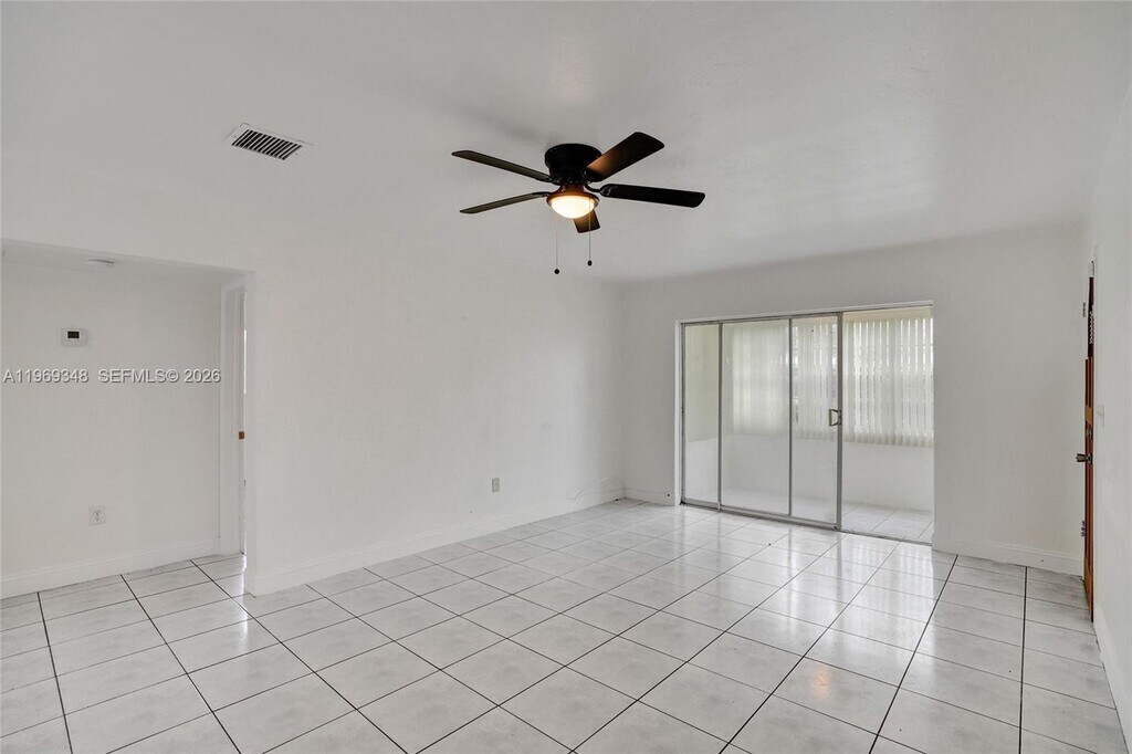 Welcome to this bright and spacious rental in the heart of North Miami Beach. Featuring an open-concept layout with sleek white tile flooring throughout, this home offers a clean, modern feel and plenty of natural light. The living and dining areas flow seamlessly, creating a comfortable space for both relaxing and entertaining. Enjoy ceiling fans for added comfort and large windows plus sliding glass doors that bring in natural light and lead to an enclosed patio area perfect for a home office setup, reading nook, or additional sitting space. The kitchen is equipped with white cabinetry, ample storage, tiled countertops, and stainless steel appliances. Freshly painted with neutral finishes throughout, this home is move-in ready. Conveniently located near major highways, shopping, dining, schools, and just minutes from Aventura, Sunny Isles, and the beach. MLS # A11969348