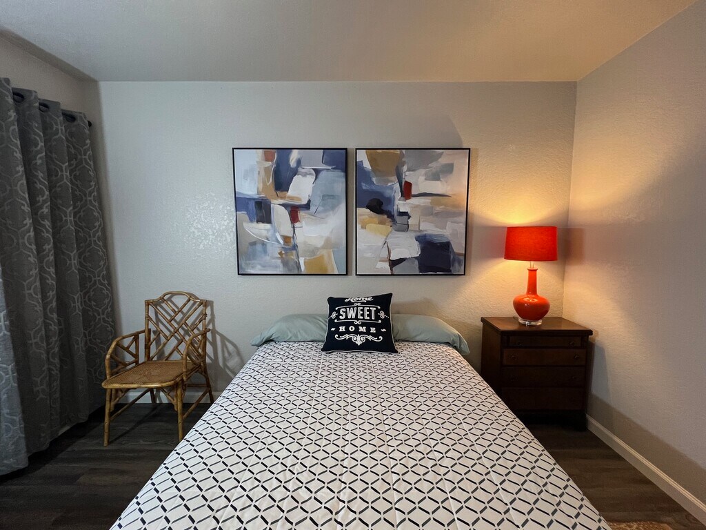 Fully Furnished Clean and well-kept condo in Alamo Heights building with only 12 units 1 Queen bed, 1 Full bed, pictures describe the furniture and kitchen amenities. Luxury vinyl, Washer and dryer IN unit, two inches window blinds, assigned carport Water, gas and electricity (up to $100) included in rent, short walk to universities and restaurants. Minimum stay two months. Cleaning fee $200.00