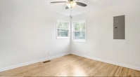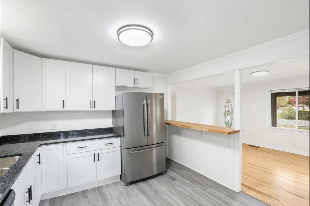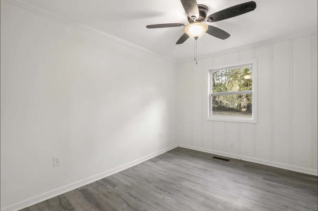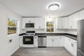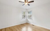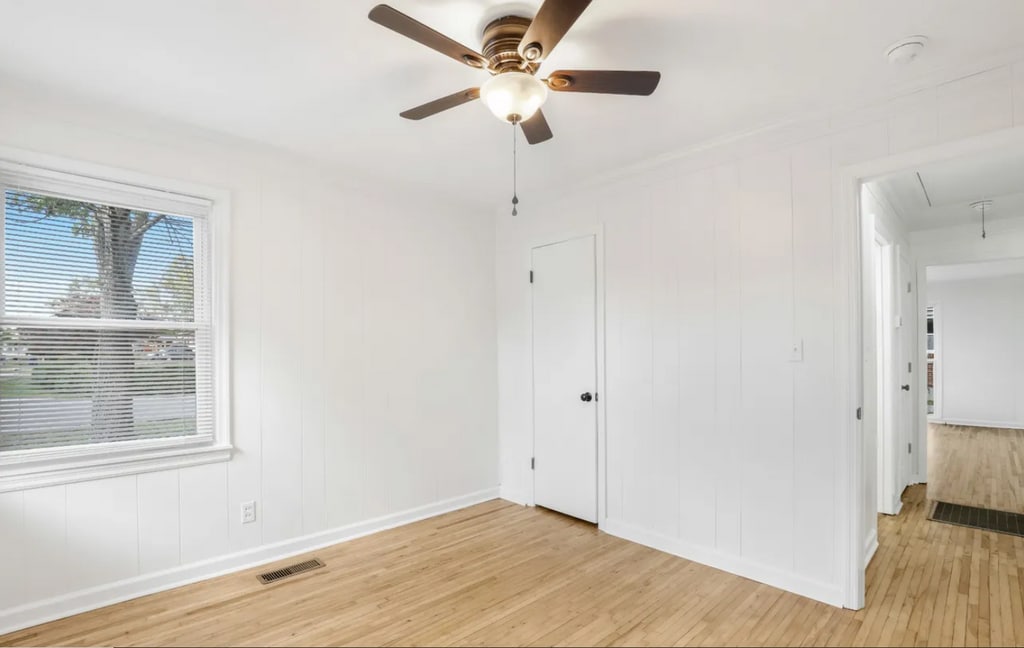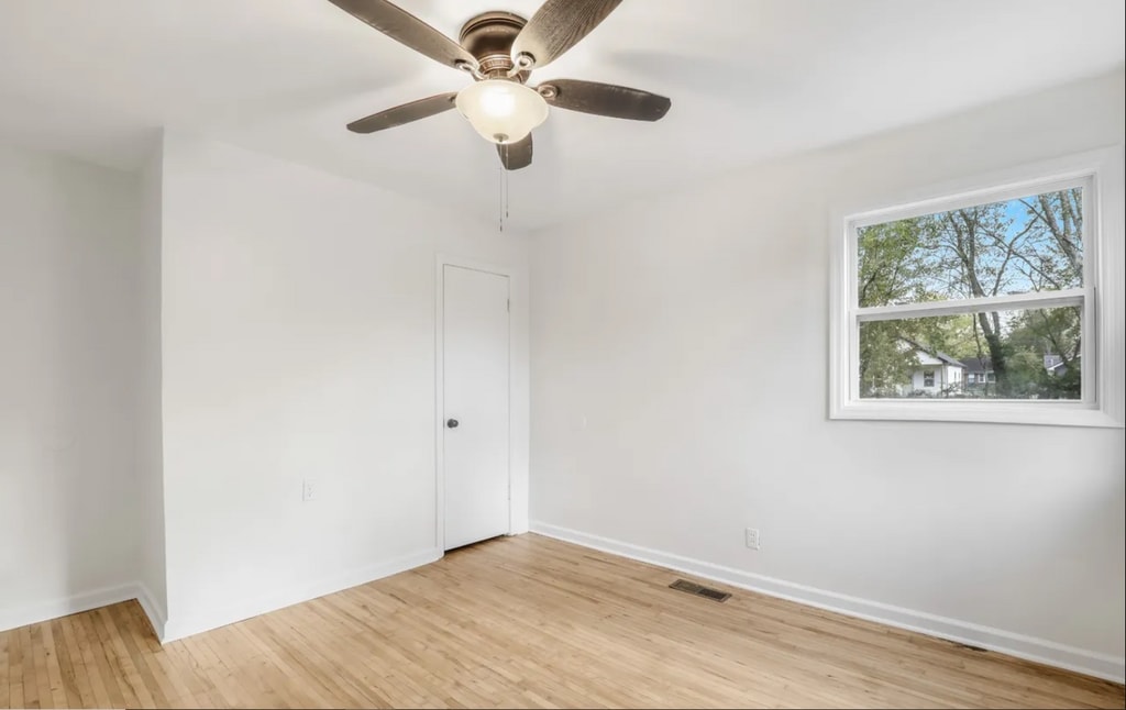 All brick, 3 bedroom, 1 bathroom, kitchen, living area, 950 sq ft., gas heat, gas stove, hardwood floor, new windows, new paint, new cabinets/countertops, new roof.