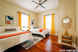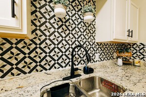 Beautiful picture-perfect home on a large corner lot. FURNISHINGS ARE NEGOTIABLE. Beautifully updated cottage chic home was remodeled with a meticulous eye for detail, including updated kitchen and bathrooms. Hard wood and decorative tile flooring throughout. Gorgeous open concept kitchen with stylish granite counters and mission style backsplash with a trendy eat-in dining nook is perfect for entertaining. Light-filled spacious bedrooms with upgraded window treatments. Large, welcoming backyard with a covered patio excellent for outdoor entertainment. Just minutes to the San Antonio Riverwalk, Blue Star Art Complex and eateries, Hemisfair Park, downtown restaurants, museums and entertainment districts. Easy access to I-37, 281 and IH-10. Shopping nearby.