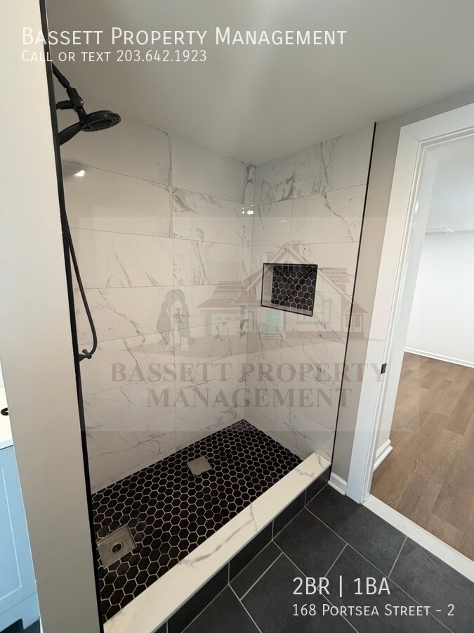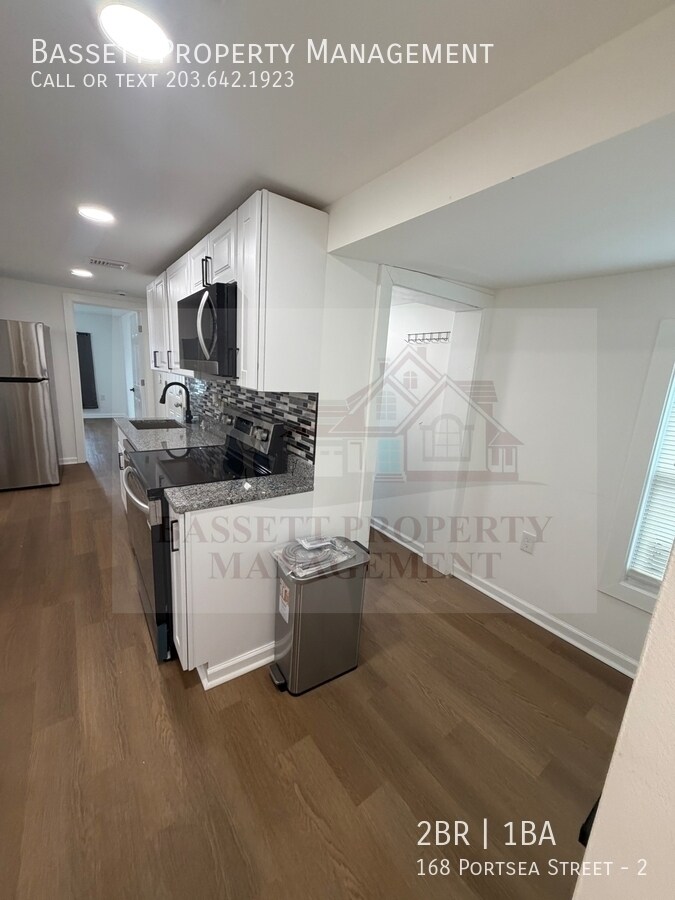 Welcome to 168 Portsea Street, 2nd Floor, in New Haven, a beautifully remodeled two-bedroom, one-bath apartment featuring modern finishes and a bright, open layout. This 810-square-foot unit boasts an inviting open-concept living space with warm hardwood-style flooring throughout. The fully updated kitchen includes stainless steel appliances, granite countertops, a stylish tile backsplash, and a center island with pendant lighting that provides additional workspace and seating. Recessed lighting and sleek white cabinetry create a fresh, modern ambiance. The apartment offers two comfortable bedrooms with closet space and a fully renovated bathroom with contemporary tile flooring, a modern vanity, and a custom-tiled shower with a built-in niche. A washer and dryer are included for added convenience. Step outside onto the rear deck, perfect for enjoying fresh air or relaxing after a long day, with stairs leading down to the backyard area. On-street parking. Conveniently located with easy access to downtown New Haven, shopping, restaurants, parks, and major highways, including I-95 and I-91, this apartment combines comfort and accessibility. Tenant Responsibility: All Utilities (Electricity, Gas). Renters & Liability Insurance, Snow Removal from steps/deck/ walks. Landlord Responsibility: Water, Sewer, Insurance, Liability Insurance, Maintenance/Repairs, Mechanicals, Property Management, Real Estate Taxes, Lawn Maintenance (grass cutting and leaves). Lease terms: 1-year minimum (preference given to longer-term leases, higher monthly rate for term less than 1 year), 2-month security deposit (depending upon credit history), the screening fee is $40 per adult occupant, and the landlord will perform credit, criminal, and eviction checks. Rental references and credit scores of 650 or more are required. Up to 1 small pet is considered for a non-refundable $300 per pet move-in fee plus a minimum of $25 per pet/per month pet rent. All pets/animals must be screened (fees may apply). This is a 100% Non-Smoking Property.