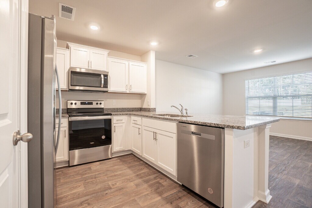 Townhome end unit available - lawn care included! Featuring 3 bedrooms, 2.5 bathrooms, and a 1 car garage. Open-concept kitchen and living area, complete with countertop seating and space for a dining table. Bedrooms upstairs, the primary bedroom has a walk-in closet and a double-bowl vanity in the en suite bathroom. Two additional bedrooms are perfect for family, guest or offices. Each has ample closet space. An upstairs laundry room with washer/dryer and another full bath are conveniently located in the hallway.