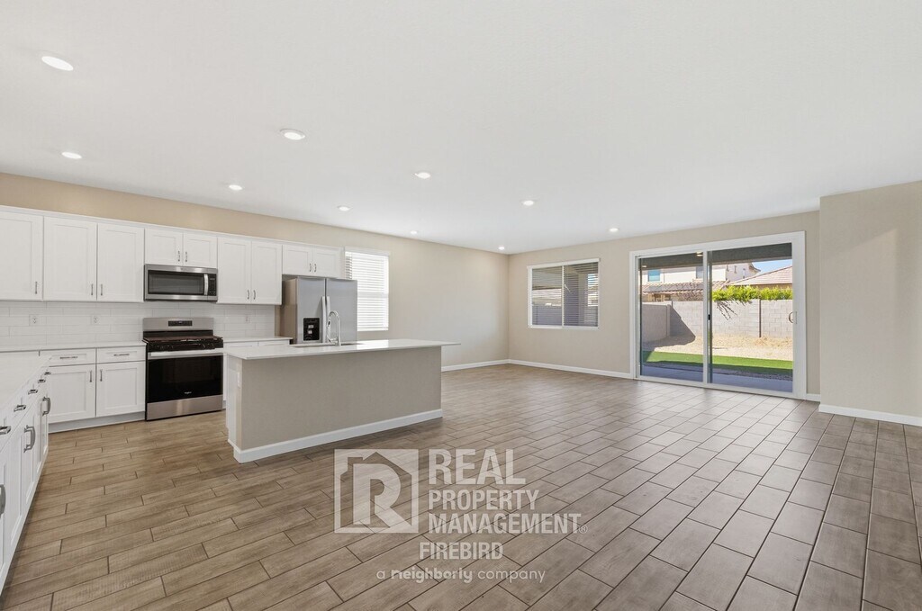 Be the first to live in this beautifully built home located in a growing Surprise community! This modern residence offers a bright open-concept layout, upgraded finishes, and low-maintenance living perfect for anyone looking for a clean, move-in-ready home in a quiet neighborhood. Home Features - Open concept living and dining area - Modern kitchen with stainless steel appliances - Quartz countertops - Large kitchen island with seating - Spacious primary suite with walk-in closet - Dual vanities in primary bathroom - Split floor plan for privacy - Washer & dryer included - Tile in main living areas, carpet in bedrooms - Energy-efficient construction - 2-car garage - Low-maintenance backyard Community & Location - Located in a newer Surprise master-planned area - Easy access to Loop 303 - Close to shopping, dining, and parks - Near Prasada shopping district - Quiet residential streets - Mountain views and walking paths nearby No Utilities Included