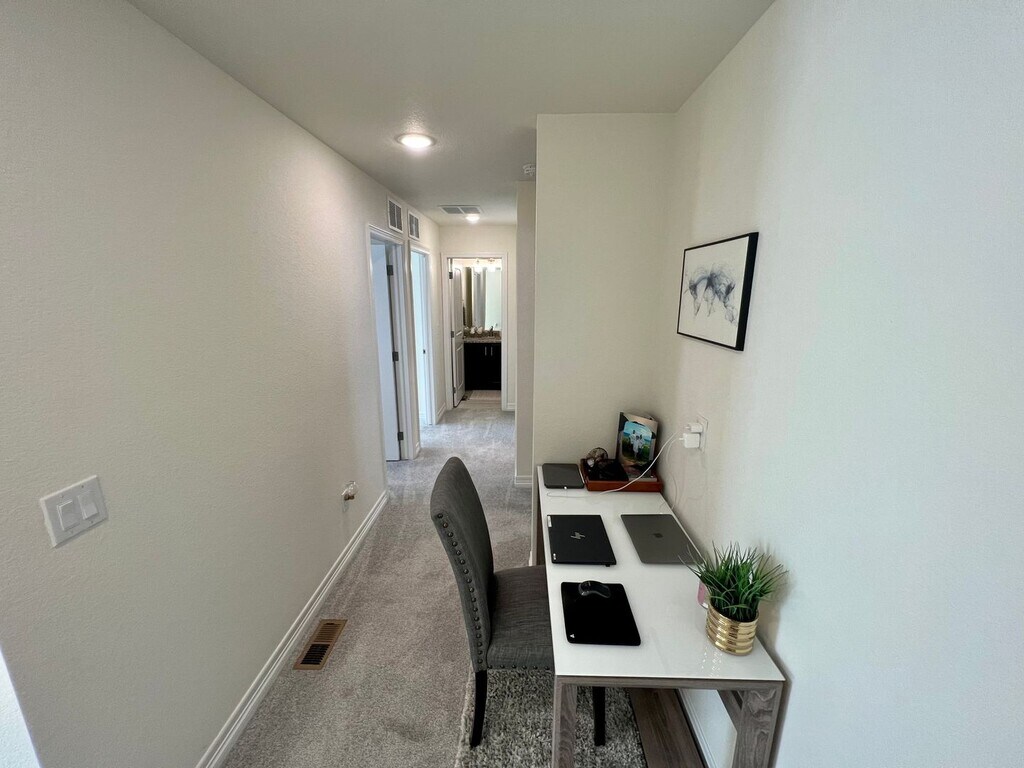 ** $350 discount on first months rent ** 3 bedroom 2.5 bath townhome off Buffalo Run Golf Course offering low maintenance living. The main floor offers an open concept floorplan, and the gourmet kitchen has a large island with room for seating and stainless steel gas appliances included. The second floor provides a convenient laundry room, primary suite with an over-sized walk-in closet, large shower, and luxurious counter space with double sinks. Features include granite counters throughout, tile flooring in bathrooms and laundry, vinyl plank flooring, tankless water heater, washer and dryer, and an oversized two car garage. Absolutely no smoking and no pets please. Security deposit is one month's rent and application fee is $35.00 per applicant.