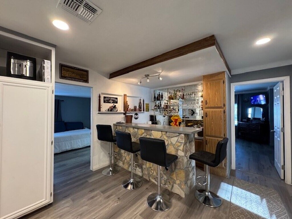 Welcome to this beautifully remodeled 2 bedroom, 2 bathroom home with a bonus room that doubles as a 3RD BEDROOM, office, den, etc in Bullhead City, AZ. This cozy and comfortable house was remodeled with new floors, new paint, lighting, and most walls were torn down and replaced to provide more room in kitchen and bedrooms. Looks like a new house! Enjoy the new interior with new furnishings, new appliances, added full bar, and a chef's kitchen that will make cooking a pleasure. Enjoy stunning mountain views from the two porches, perfect for watching morning sunrises and evening sunsets. Located near shopping, restaurants, and grocery stores, this home is also conveniently close to Highway 95 and casinos. Whether you're looking for a short-term rental for a month or up to 4 months, this vacation home is the perfect retreat for your next getaway. Don't miss out on this opportunity to experience the best of Bullhead City living. buck Reynolds Real Estate, Steven Buck bkr