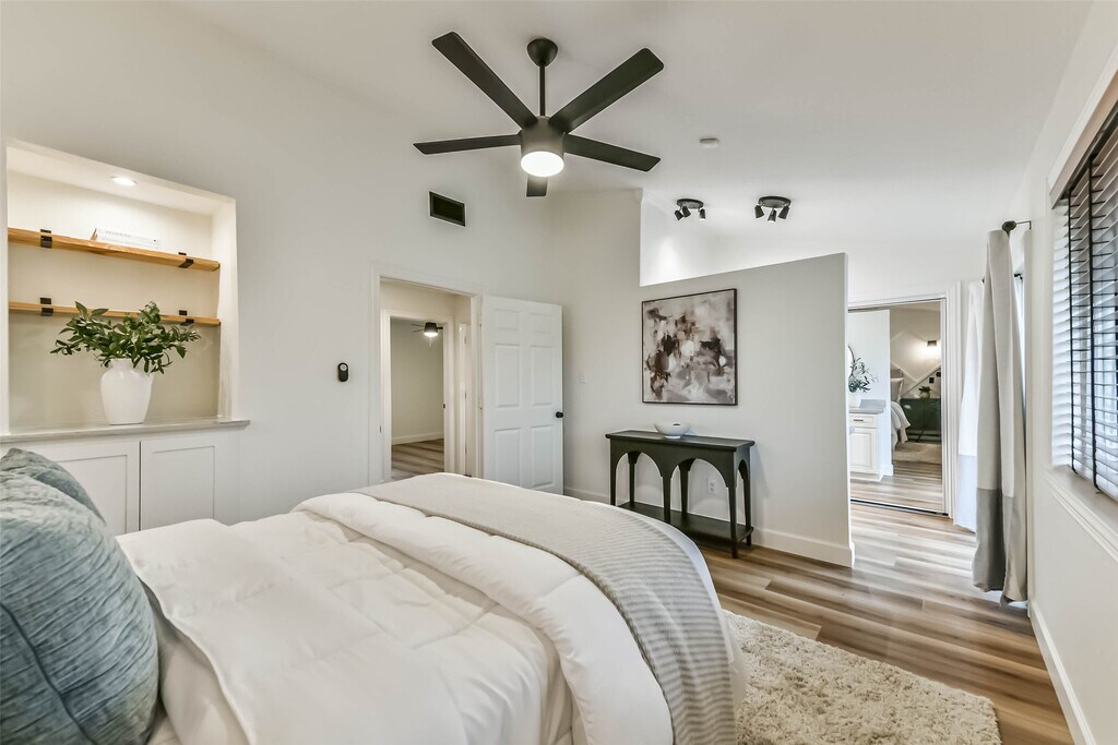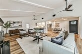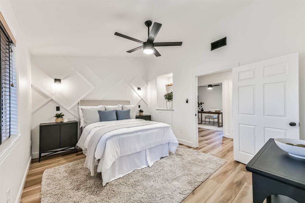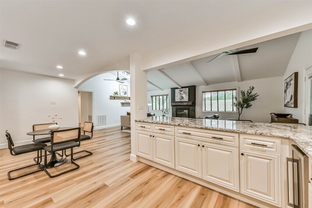 Mid-century,transitional touches on an oversized corner lot in Forest Bend. This zen-like showpiece features unbelievable landscaping,outdoor lighting,newer roof & 2025 AC,driveway & front walkway,updated windows,flooring,paint,cabinetry & hardware. With a sought after open concept,great flow is provided for entertaining between the living room,kitchen and dining area. Large wood burning fireplace,vaulted ceilings with wood beams,LVT flooring,and dreamy white paint make the living room a great space to gather. In the kitchen,huge breakfast bar,under-mount farmhouse sink and under cabinet light are finished off with granite countertops. The primary suite boasts a large walk-in shower,vanity area,wall sconces and access to the back patio. The secondary bedrooms are good in size and one could easily serve as an office with its french door entry. The backyard is remarkable with multiple patio areas,fire pit,storage shed and a majestic oak tree. Truly a rare find!! MLS# 59430985