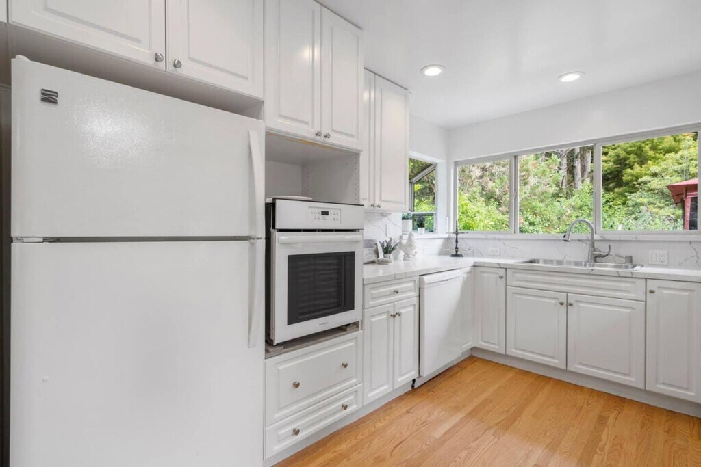 Relax in paradise with this charming 3-bedroom, 2-bathroom home nestled on just under an acre of lush space with two creeks, a naturally occurring pool, flowers, fruit trees, a fire pit, a canopied deck, outdoor eating areas, and a detached office. Located steps from San Pedro Valley Park and just a 5-minute drive to the beach and major supermarkets, this single-level 1950s home offers a natural beachy vibe and plenty of indoor and outdoor spaces to explore and relax. Ideal for nature lovers and families, this home is perfect for 4-5 adults or a small family. Designed with you in mind, this light and airy home features a large family room with a 3D television connected to Xfinity Basic and premium streaming channels including HBO, Disney, Hulu, Starz, and Netflix. The fully equipped kitchen and welcoming living spaces ensure you feel at home. With 3 bedrooms, 2 full bathrooms, an office in the house, and a detached office in the cabin, this home is set up for guests who want to work or school from home while enjoying the ample outdoors during downtime. Parent supervision is recommended for younger kids outside as the terrain is uneven with sharp drops. There is a year-round creek on the property. The property is located in a welcoming neighborhood with access to nearly an acre of fenced-in land, two creeks, and a small pool where the creeks meet, perfect for swimming. The neighborhood is great for kids 8 and up to roam free, with many trees and a bridge to explore. At the end of the street, you'll find an enormous open space with dozens of trails for hiking, biking, and jogging, including one that leads to a lake and a waterfall. A 10-minute bike trip or 5-minute car ride brings you to the beach and major supermarkets. A small shopping center for basics is just a 5-minute walk away. Terra Nova High School, a top-rated local high school, is within walking distance. Photo furnishings are representative, not actual. Any supplies beyond the starter welcome packet are up to the guest to replenish as we do not restock these items. This is an industry-standard practice. Cleaning supplies are not stocked due to safety issues. [SI]