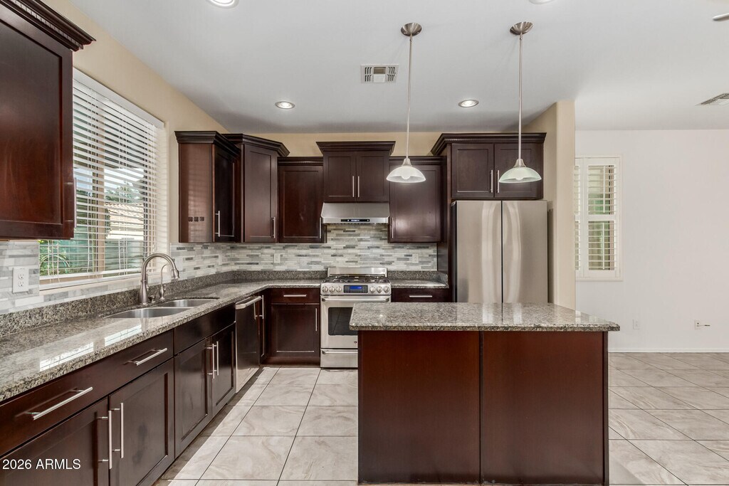 RENT THIS BEAUTIFUL HOME in the desirable Stonefield community located close to 101 and 202 freeways,only 2 miles from Intel & Wells Fargo. This property has 4 bedrooms,3 full baths (1 Bedroom and full bath downstairs),eat-in kitchen,great room! The upgraded kitchen boasts granite countertops,island,stainless steel appliances,upgraded cabinets. Washer & Dryer included. Community Amenities includes: Heated Pool & Spa.