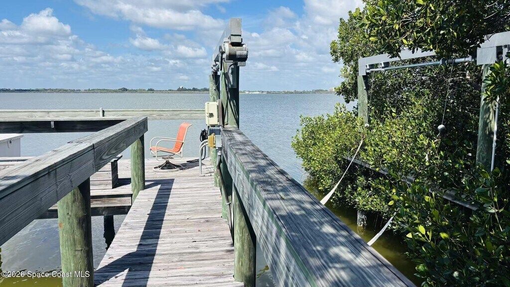 Riverfront Paradise with Private Dock & Boat Lift! Experience waterfront living at its finest in this beautiful 3BR/2BA Merritt Island home. - The Space: 2,906 sq. ft. of open-concept living with high ceilings and a massive 3-car garage. - The Views: Panoramic River vistas from the living room and bedrooms. - The Outdoors: Fenced yard,private dock,boat lift,and frequent dolphin sightings. - The Location: Tucked away on a quiet cul-de-sac just minutes from Cocoa Beach and an easy 50-minute drive to the airport. - Stainless appliances,''his & her'' master closets,and epic sunsets included. - Water access: Dock for boating,kayaking and fishing. Boat lift. MLS # 1074955