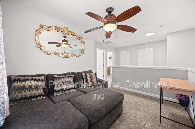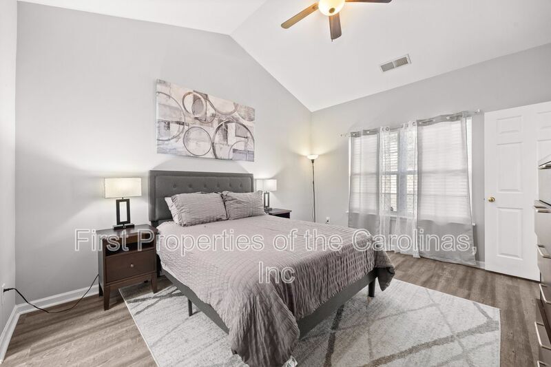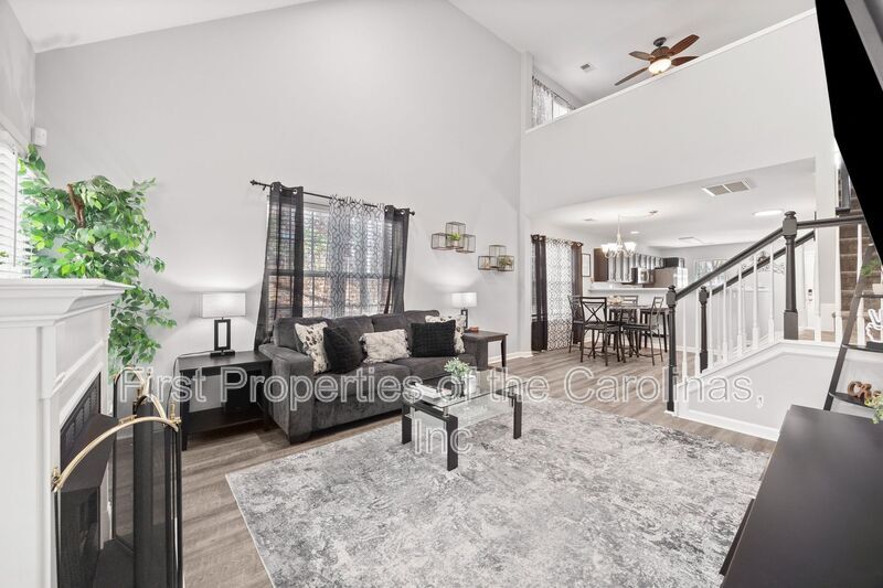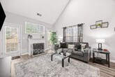 This immaculate 3-bed, 2.5 bath townhome in the Olde Stone Crossing community features the primary bedroom on the main level. The primary suite boasts an ensuite bath with a step-in shower, a double sink vanity, and a WIC. The highly functional and desirable open floor plan on the main level includes the kitchen, dining area, and living room. The living room has a vaulted ceiling, a gas-log fireplace, and opens onto the back patio. Two additional secondary bedrooms and a small loft area are located on the upper level. The loft is perfect for an office, media, or kids' area and overlooks the living room below. The secondary rooms share a hall bath with a shower/tub combo and a large vanity. The laundry is on the main level near the kitchen. The garage has a manual door. Pets Conditional. **No Cats. This unit is offered furnished or unfurnished with 6, 9, or 12-month lease options. Amenities: Playground, Outdoor Pool, Sidewalk, Street Lights