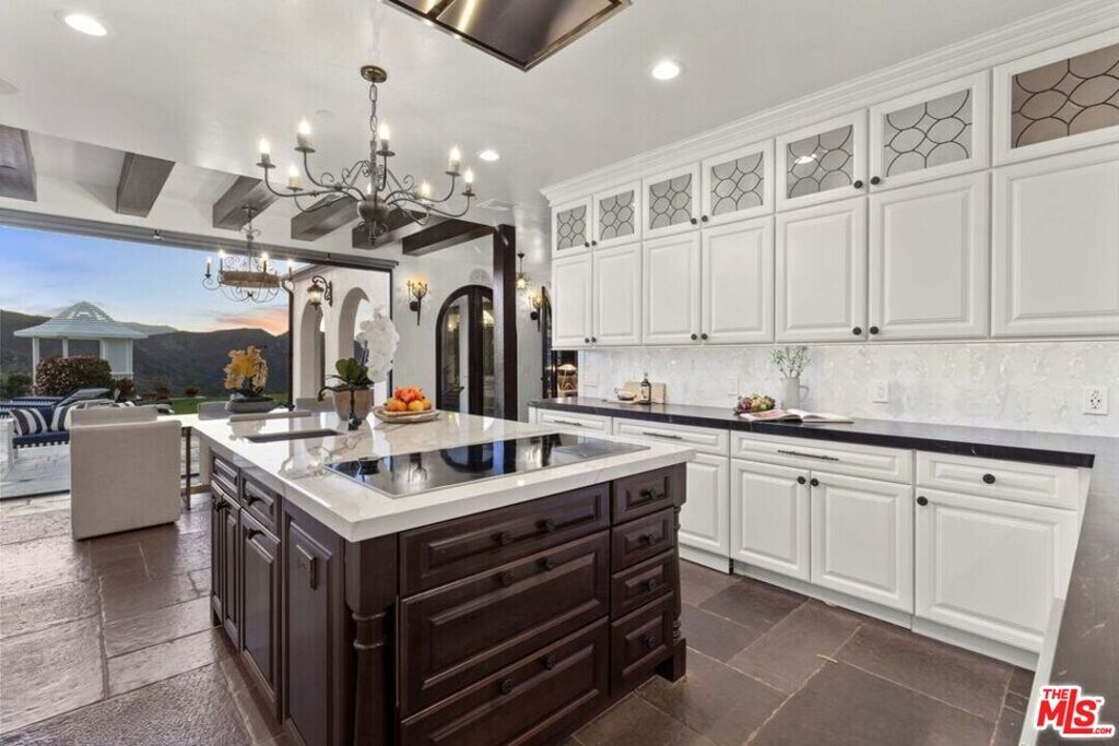 Set on a quiet cul-de-sac in the coveted Upper Marquez Knolls area, 16866 Charmel Lane is a 5-bedroom, 5-bath Spanish-style villa offering 3591 square feet of elegant California design on a 19,338-square-foot lot. Framed by sweeping mountain, canyon, and ocean views, the home blends classic architecture with modern comfort, creating a space that feels both elevated and welcoming.Inside, a recently remodeled designer kitchen with Castle-stone flooring and Miele appliances anchors the main living spaces, flowing seamlessly between the formal living room with fireplace, dining room, and family roomperfect for both relaxation and entertaining. The primary suite serves as a private retreat, featuring a large walk-in closet, spa-like en-suite bath with heated floors, and a balcony overlooking the Pacific. Additional highlights include a library, office, and sauna, along with rich hardwood and tile flooring throughout, offering thoughtful details at every turn.The backyard reflects a timeless indoor-outdoor style, featuring a resort-style pool, spa, and charming gazebo that open to sweeping mountain, canyon, and ocean views. This serene and private setting captures the essence of refined Pacific Palisades living, making it a truly inviting escape. MLS# 25623631