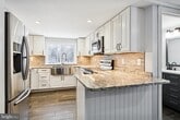 Charming, beautifully updated, and full of character — this stunning 3-bedroom, 2-bath farmhouse in the Daniel Boone School District offers the perfect blend of modern upgrades and timeless style. The recently renovated kitchen is a true standout, featuring granite countertops, stainless steel appliances, and a fresh, contemporary feel that makes both cooking and entertaining a joy. The first floor includes an updated full bath, two spacious living areas, and a dedicated dining space, creating a flexible layout ideal for everyday living. Upstairs, the home continues to impress with a beautifully redesigned main bathroom showcasing updated flooring, recessed lighting, a striking exposed stone wall, and a custom closet that adds both style and functionality. Two additional generously sized bedrooms provide comfortable extra living space or even a home office. Situated on over half an acre, the property offers exceptional outdoor space along with a detached two-story garage — perfect for storage, hobbies, tools, lawn equipment, or work vehicles. With parking for 7+ cars, this home is a rare find for anyone needing extra space, garage capacity, business equipment storage, or room to grow.