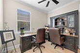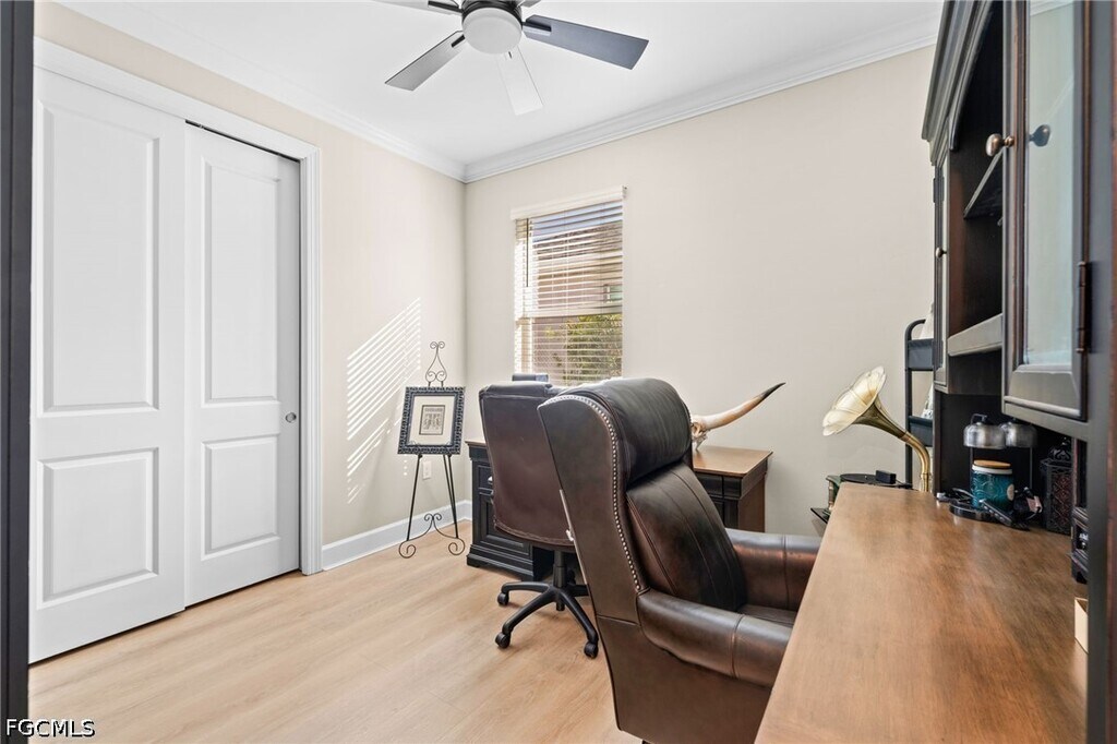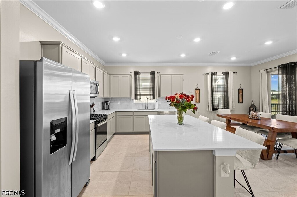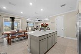 Experience upgraded lakefront living in this meticulously maintained Heston model by Pulte Homes,located in the desirable Verde neighborhood of Babcock Ranch. Offering 4 bedrooms,2 bathrooms,and 1,850 square feet under air,this home features soaring 9'6" ceilings and crown molding in the living areas and bedrooms,creating a refined and welcoming atmosphere throughout. Luxury vinyl plank flooring runs throughout the entire home,delivering a clean,modern look and easy maintenance. The open-concept layout seamlessly connects the kitchen,complete with stainless steel appliances,to the spacious gathering room and dining area. Sliding glass doors lead to a screened-in lanai overlooking peaceful lake views with desirable sunrise exposure. A black aluminum fence frames the backyard without obstructing the water view,offering both security and style. The primary suite serves as a private retreat featuring accent walls,lake views,dual vanities,and a walk-in shower. Additional features include impact windows,a smart thermostat,MyQ garage system,and a 2-car garage with an epoxied floor. Ideally positioned in Midtown directly across from Explorer's Park and just moments from Verde's resort-style pool and cabana,residents also enjoy full access to the extensive amenities of Babcock Ranch,including nature trails,community events,and Founder's Square.