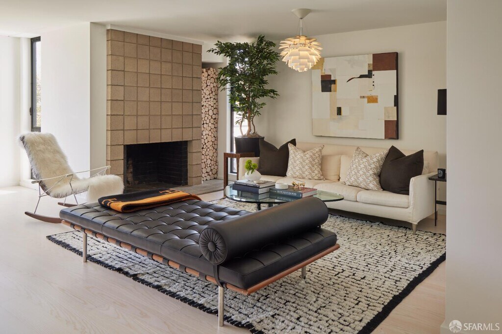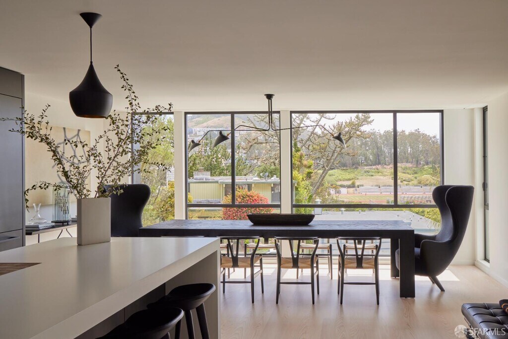 Architecturally significant Eichler home originally designed by Claude Oakland in 1963 and thoughtfully renovated by Saturn Construction. Located in Diamond Heights near Glen Canyon Park, this fully detached residence blends iconic mid-century modern design with contemporary luxury. The reimagined floor plan offers a seamless open-concept living, dining, and kitchen experience anchored by a dramatic 11-foot island. A spacious family room with powder room opens directly to the central courtyard, featuring a gas fireplace and exceptional indoor-outdoor flow. The upper level includes four bedrooms and three full bathrooms. The primary suite serves as a private retreat with access to a patio featuring a gas fireplace, an en-suite bathroom, and a large custom pass-through closet. One additional bedroom offers an en-suite bath with skylight, while another features a concealed entrance through a custom pivoting bookcase. The lower level includes a two-car garage with Tesla charger and a dedicated laundry room with stacked washer and dryer. Moments from nature, trails, and neighborhood amenities, this exceptional Eichler offers a rare opportunity for luxury single-family living in San Francisco. Landlord is a California Real Estate Agent. MLS # 426112446