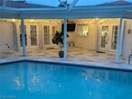 RENOVATED GOLF COURSE RETREAT WITH PRIVATE POOL & STUNNING VIEWS. Experience the pinnacle of Naples living in this meticulously updated 3-bedroom,2-bathroom pool home. Located on an oversized lot in the heart of the Lely Country Club area,this residence overlooks the lush 2nd green of the newly renovated Hibiscus Country Club. THE INTERIOR: Completely transformed with modern sophistication,the home features 16" tile throughout and a kitchen boasting custom cabinetry with roller drawers,granite countertops,and premium stainless steel appliances. The master suite offers a spa-like retreat with marble finishes and elegant French doors leading to the pool. THE OUTDOORS: Step outside to your private oasis—a large,screened lanai featuring a dedicated TV area and a sparkling in-ground pool. Enjoy the serene "babbling creek" that runs along the property while you watch the sunset over the fairways. PRIME GOLF LOCATION- No membership required to play at the "Best Public Course in Naples." Equipped with electric storm shutters. In-unit laundry,2-car garage,and split-bedroom floor plan for maximum privacy.