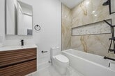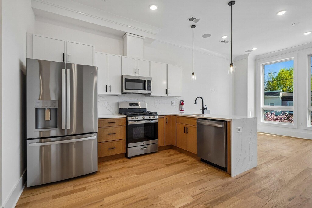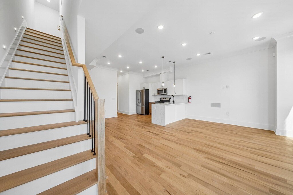Spacious, newly constructed 3bd/2ba duplex layout featuring full-floor living + exclusive rooftop access in the desirable Jersey City Heights. This top-floor home offers high-end finishes, smart upgrades and hardwood floors throughout. The open kitchen features GE appliances, quartz countertops, vented cooking, and ample cabinetry. Bright and airy with 10-ft ceilings, Andersen windows, and soundproofing for added comfort. Includes in-unit laundry, LED lighting, Nest smart thermostat, Ring doorbell, and 24/7 security system, plus thoughtfully added extra electrical outlets throughout for everyday convenience and work-from-home flexibility. Stylish bathrooms feature polished porcelain tile, rain showerheads, and LED-lit mirrors. Private rooftop with built-in speakers, gas line for grilling, and stunning NYC skyline views including the Empire State Building and World Trade Center. Quiet location near Central Ave shopping and dining, with easy NYC access via the 119 bus and close proximity to Journal Square PATH. No pets. Tenant pays gas and electric.
