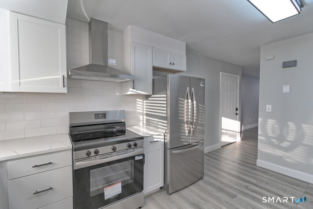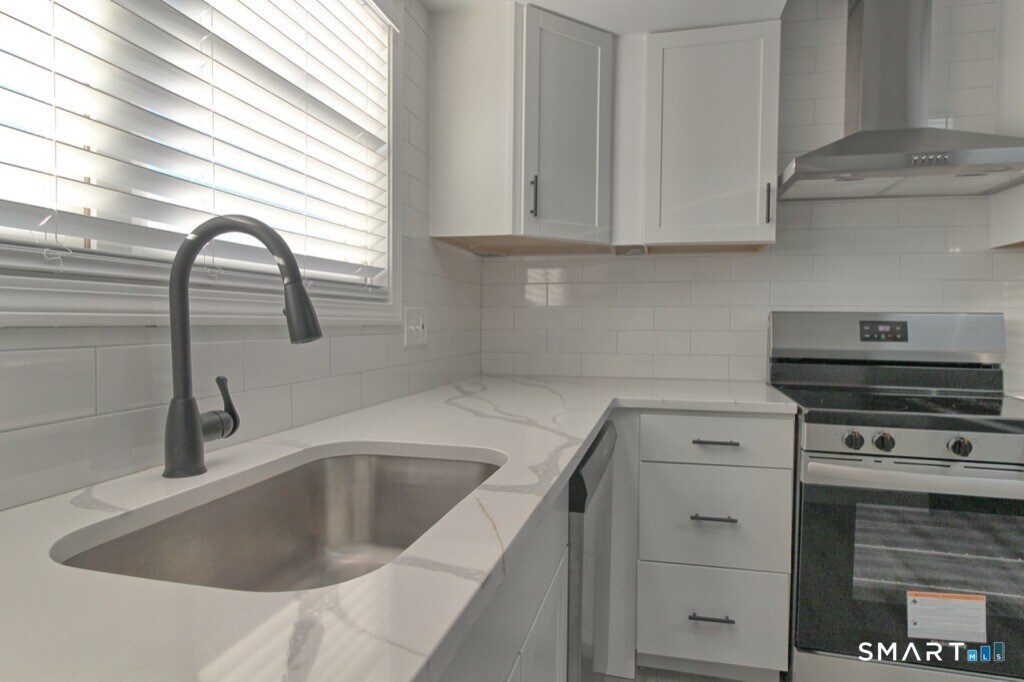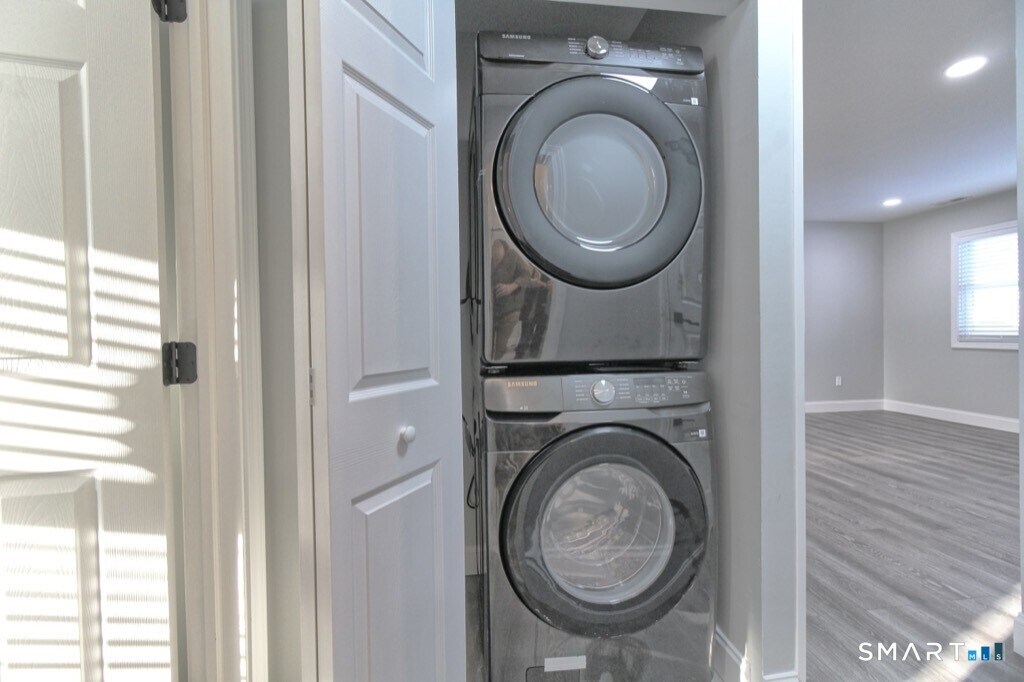 Call for Availability - Fall in love with this beautifully renovated 2 bedroom condo!! Wide plank vinyl flooring runs throughout the home, new doors, new trim, modern fixtures, stylish hardware, and recessed lighting for a clean, contemporary feel. The sun filled eat-in-kitchen is a standout, featuring quartz countertops, white shaker cabinets, and stainless-steel appliances. The bathroom is a show stopper, offering a spa like experience with floor to ceiling tile, a walk in shower with a rainfall shower system enclosed by glass doors, and a sleek vanity with mirror. The inviting living room is perfect for relaxing or entertaining, enhanced by a stylish electric fireplace and a shiplap accent wall. Additional conveniences include an in-unit full-size washer and dryer, generous closet space, and an extra-large lower level storage area for all your storage needs. The location is exceptional-walking distance to the train station, Milford Green, local grocery stores, and just minutes from major highways and Milford's beautiful shoreline. Make your appointment today and be the first one to enjoy this stunning, all new condo. MLS# 24152568