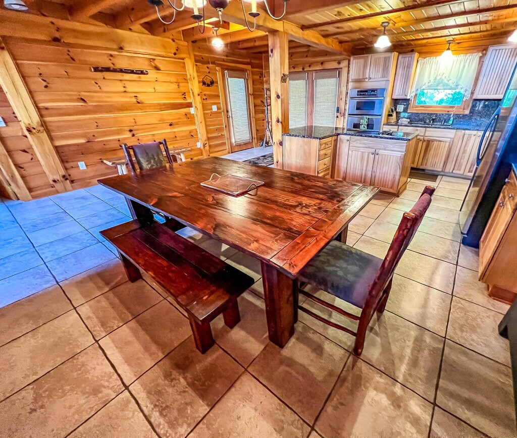 DREAM MOUNTAIN LODGE AVAILABLE NOW FOR MONTH TO MONTH RENTAL Upon opening the door, a luxury kitchen fit for a professional chef is waiting. Featuring granite countertops, stainless appliances including and island with cooktop and hickory cabinets, this kitchen is sure to please. There's also barstool seating at the island. A dining table with seating for 8 gives plenty of room for the entire family, is situated between the open kitchen and living area. The main floor opens from the kitchen to the spacious living area with cathedral windows for taking in those long-range mountain views and wildlife. The “Bear” themed master suite on the main level features a comfy king size bed and access to the back deck. The opposite side of the main level offers two additional bedrooms with a shared hall bath. The “Deer” themed room features a queen bed and the “Moose” room offers a double bed. Climb the steps to the upper loft area and you will find another master suite with king bed, flat-screen TV and there's even a desk with printer for those that need to catch up on emails or work. Dream Mountain Lodge also offers WIFI throughout. Head downstairs for the game room for entertainment! The expansive lower level den offers a pool table, ping pong table and flat-screen TV for your enjoyment. There's also another bedroom on this level that offers a full and twin bed in addition to the full futon in the TV area. A full bath is accessible from both the bedroom and game room. Step outside to the lower level deck and you will find a bubbling 6-person hot tub. AVAILABLE NOW FOR MONTH TO MONTH RENTAL. Electricity and propane included in rent. NO PETS. 4WD Required. Shown by appointment only. Call Jennifer or Amber at Carolina Mtn. Properties & Rentals, Inc. for additional details. or .