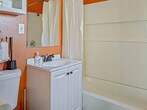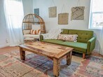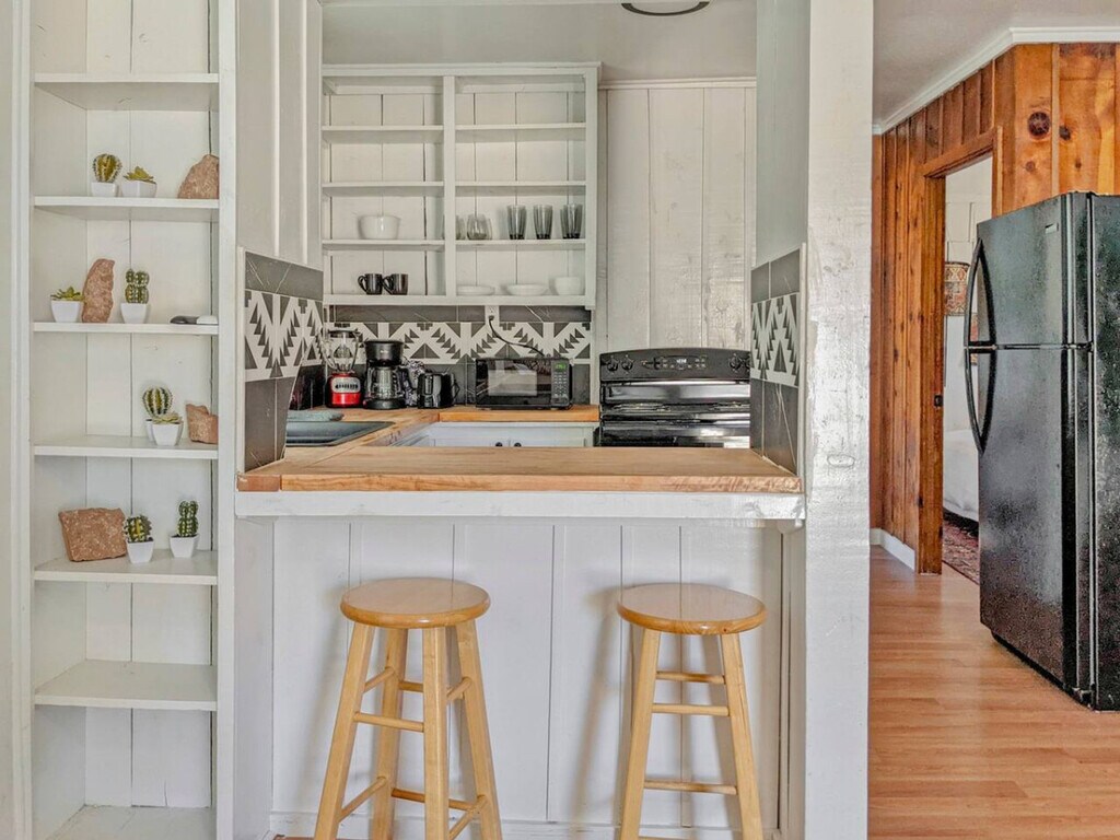 Feel at home in this cozy apartment, ideal for travelers, families, or pet owners looking for a simple, comfortable Southern Utah stay. This cottage is attached to the community game room of the property, so you may hear other guests through the shared wall. This relaxed and practical apartment has a tiny-home feel and features a master bedroom with a king-size bed and closet, and a second bedroom with a queen-size bed. The full bathroom has a tub/shower combination. The comfortable living room has a couch and smart TV. The compact, fully equipped kitchen includes cookware, utensils, appliances, and bar seating for two. Shared laundry is located across the way in the main house. Guests can enjoy shared exterior spaces, including a hot tub, cowboy pool (seasonal), dog park, BBQ, hammocks, pavilion, lounge chairs/couches, cornhole and horseshoes, ping pong, bikes, and a community washer and dryer. Pets are welcome with a fee of $10 per pet per day. Ample on-site parking is available for cars, boats, or trailers. Stay in the heart of downtown Kanab, a charming desert town known as the gateway to Southern Utah’s most iconic landscapes. Just two blocks from Main Street, you’ll find local shops, cafes, and restaurants. Kanab is an ideal base for outdoor adventures, with easy access to Zion National Park (30 miles), Bryce Canyon National Park (76 miles), Best Friends Animal Sanctuary (7 miles), and Coral Pink Sand Dunes State Park (20 miles). Other nearby adventures include Peek-A-Boo & Spooky Slot Canyons (12 miles), Toadstool Hoodoos Trailhead (45 miles), and Grand Staircase-Escalante National Monument (15 miles). Walls are thin, and you may occasionally hear other guests outside. No smoking or vaping is allowed on the premises. A $200 per day fee will be assessed for each day of the reservation if it is found that guests have been smoking or vaping on the premises. For unauthorized pets, a $250 fee will be assessed. Quiet hours begin at 10:00 PM each night and continue until sunrise. [SI]