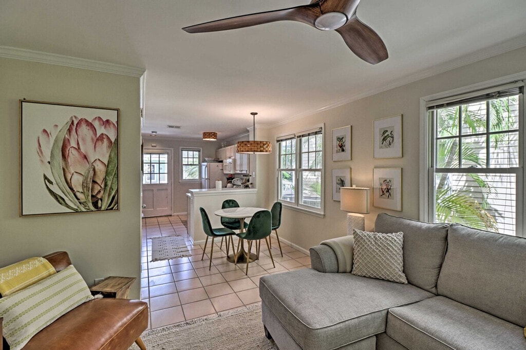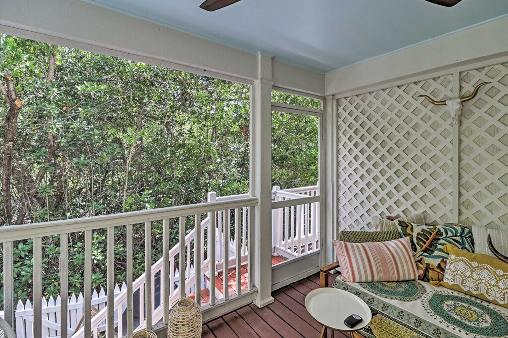 The advertised rate of $10,767/month is the lowest available price, based on a 1 month(s) stay with a move-in date of April 1, 2026. Rates vary depending on the duration of stay, season, and other parameters. For exact pricing and additional pricing components, please visit our website and enter your desired move-in and move-out dates. The rate is applicable when billed upfront; it can be higher if billed in multiple payments. Experience the allure of crystal-clear waters, picturesque beaches, and famous historic sites with a stay at this charming 2-bedroom, 1.5-bath townhome. Nestled in a quiet, serene neighborhood, this boho-inspired retreat offers multiple tranquil outdoor living and dining areas, perfect for unwinding after a day of exploring. Enjoy the sun at Smathers Beach, stroll along Duval Street, and explore popular museums, all followed by stunning sunsets over Mallory Square. This delightful townhome invites beachgoers and snowbirds alike to enjoy its welcoming atmosphere. With a fully equipped kitchen, smart TVs, and an open floor plan, you'll feel at home in this cozy retreat. The outdoor spaces, including a furnished screened porch with bistro lights and a ceiling fan, a patio with a dining table and gas grill, and a second-floor balcony, provide ample opportunities for relaxation and dining al fresco. For those looking to enhance their stay, the community offers an 18-hole golf course for an additional fee. Street parking is available for up to two vehicles. Located just 5 miles from the Historic District, this property offers easy access to the white-sand beaches, famous key lime pie, and vibrant nightlife of Key West. Enjoy the community perks, including two outdoor pools, a fitness center, tropical landscaping, and a clubhouse, all within close proximity to the best restaurants and attractions. The bedrooms and full bathroom are located on the second floor, requiring stairs for access. Street parking is available for two vehicles. Stay connected with free WiFi throughout the townhome, making it easy to work remotely if needed. [SI]