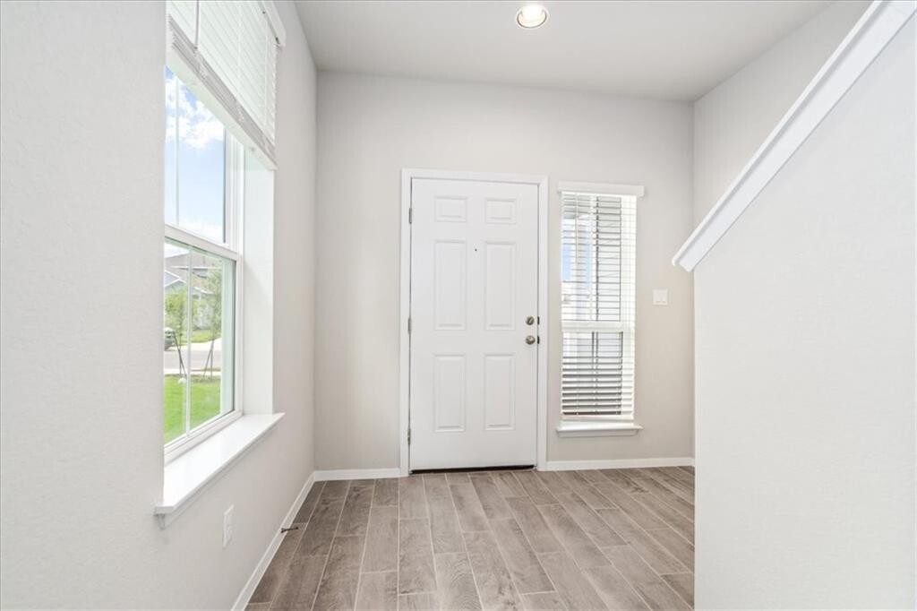 $500 off with signed lease in October! Stylish and move-in ready, this 2-story home in desirable Hymeadow offers a thoughtful layout with a main-floor primary suite, a spacious second-floor game room, and a private backyard retreat. Set on a beautifully landscaped lot, the home welcomes you with charming curb appeal and a covered front porch. Inside, you'll find wood-look tile flooring throughout the main level and an open-concept great room that seamlessly blends the living, dining, and kitchen areas—ideal for entertaining or everyday living. The kitchen is a standout, featuring a large center island with breakfast bar, granite countertops, subway tile backsplash, and stainless-steel appliances including a gas range. The main-floor primary suite boasts plush carpet, recessed lighting, a generous walk-in closet, and a private bath with an extended quartz-topped vanity and a walk-in shower behind a sleek glass enclosure. Upstairs, you'll find two secondary bedrooms, a shared guest bath, and a large game room perfect for playtime or movie nights. The private backyard features a covered patio and ample space to relax or entertain outdoors. Community pool and pickleball court are now open—just in time for summer fun! Conveniently located just 30 minutes from Downtown Austin—don't miss your chance to tour this beautiful home! *Please note: photos are not of the actual home but depict the same floor plan from a nearby rental taken a few years ago. Finishes and fixtures may vary slightly.*