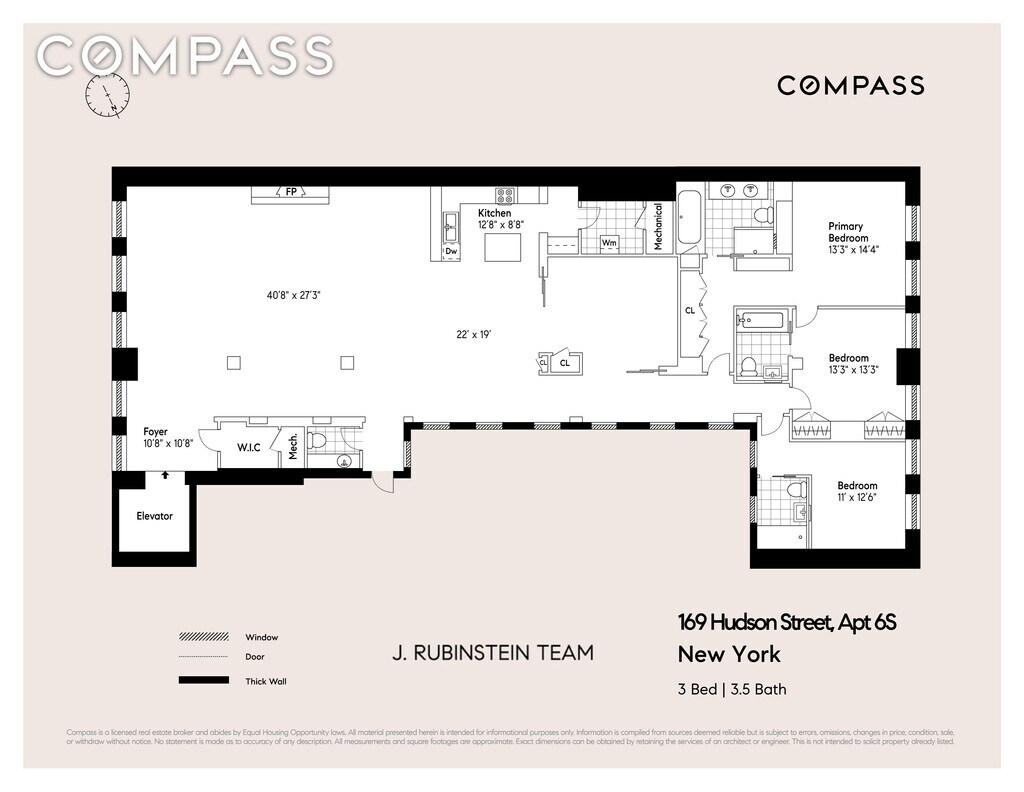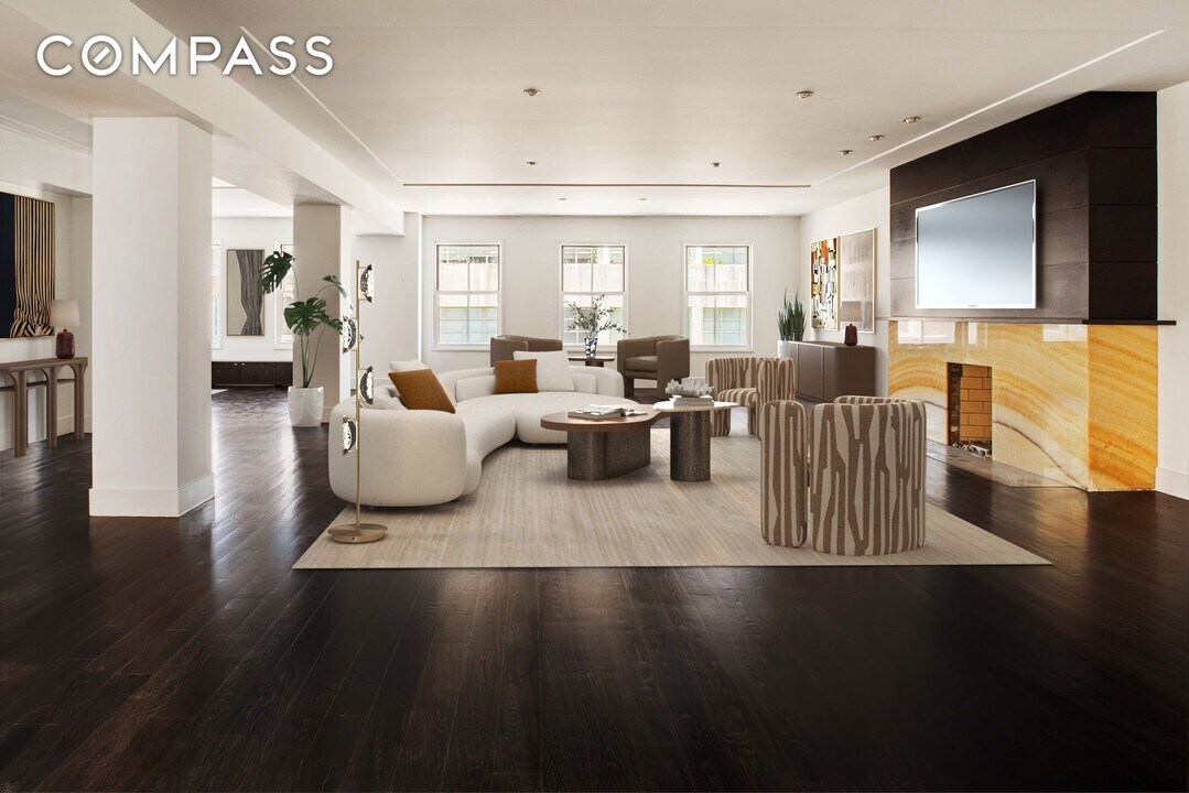 This magnificent TriBeCa residence spans 3,584 square feet of sophisticated living space, with three bedrooms plus a large home office (or a flexible 4th bedroom). This loft is bathed in natural light from 20 oversized windows offering triple exposures to the north, east, and west. Enter directly from a private keyed elevator into a sweeping great room, where wide-plank hardwood floors and custom wall panels frame a striking wood-burning fireplace. The open Bulthaup kitchen blends form and function with slate countertops, sleek cabinetry, and a stylish breakfast bar—perfect for both entertaining and everyday living. The primary suite is drenched in afternoon light and boasts dual walk-in closets along with a spa-like en-suite bath featuring a double vanity. The western wing hosts two additional bedrooms, a second full bath, and a very large flexible room with sliding glass doors. Modern comforts include radiant heated floors, soundproofed construction, a built-in Sonos sound system, Crestron smart home controls, and an in-unit washer/dryer. Originally constructed in 1893 as a warehouse, the landmarked Roebling Building was reimagined in 2000 by BDB Development and architect Joseph Vance into a boutique condominium. Amenities include a full-time doorman, resident superintendent, fitness center, private storage, wine cellar, and the building’s signature landscaped courtyard. Set in the heart of TriBeCa’s historic district, this residence offers immediate access to world-class dining, shopping, art galleries, and beloved neighborhood parks.