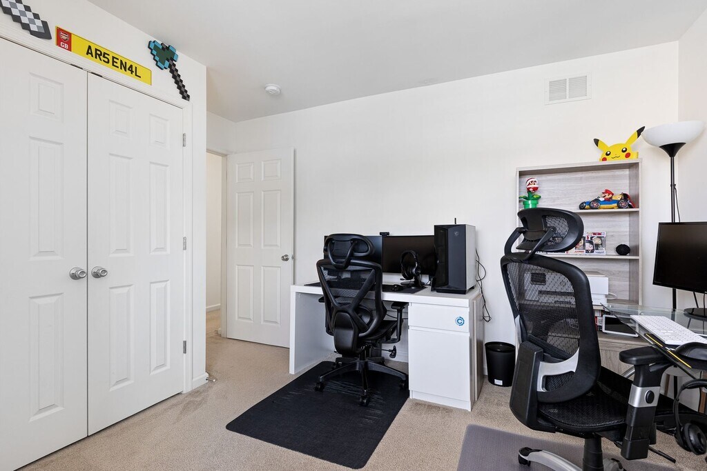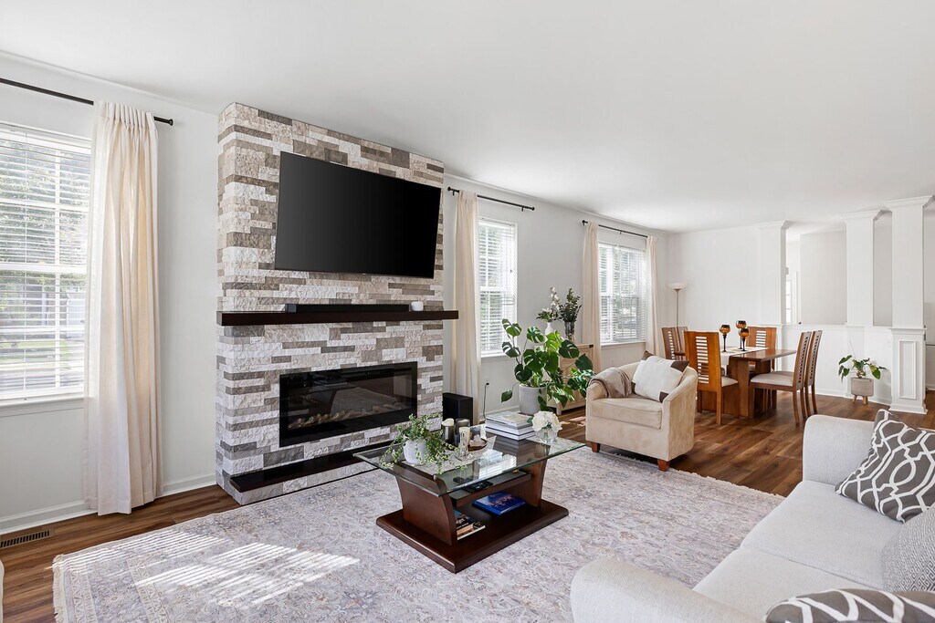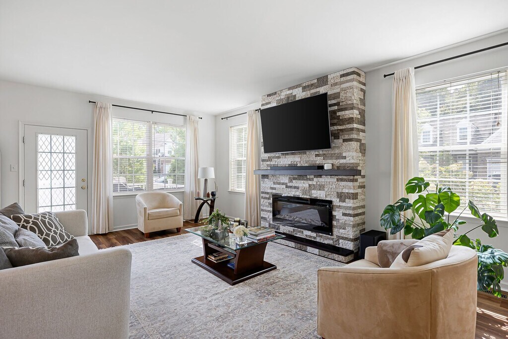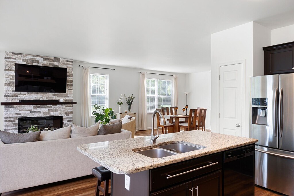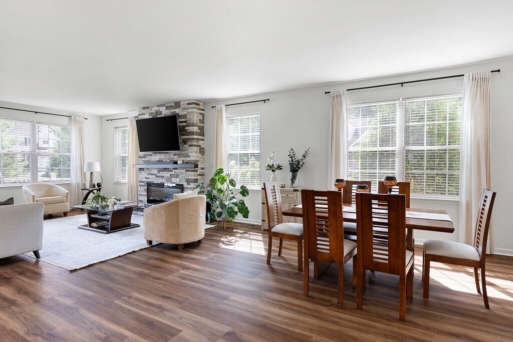 Welcome to 169 Meridian Blvd in Meridian Crossing! This stunning 4 bedroom, 2.5 bath twin home on a corner lot features over 3200 sq ft of living space! Upon entry you'll notice the bright and open floor plan with 9ft ceilings, recessed lighting, and beautiful luxury vinyl plank flooring throughout the main level. Flexible spaces for living and dining open to the well-appointed kitchen with granite counters, tile backsplash, built in microwave, all appliances, and plenty of storage. Stone accent wall with electric fireplace adds elegance and ambiance. The rear composite deck is a perfect place to relax and unwind. The main level has access to 2 car gar garage, powder room, storage closets, and access to extra living and recreation space in the large, finished basement space that includes additional storage room. The 4 bedrooms are on the upper level featuring a primary suite with double closets and a primary bath with tiled walk-in shower and double vanity. Three spacious bedrooms, a full bath, and laundry space complete the carpeted upper level. This home is a showstopper in a young community rich with amenities including walking/jogging paths and trails, club house, gym, pool, playgrounds, ponds, and green space. Applicants must meet established qualification criteria including but not limited to a strong credit history that is clear of any court judgments and past-due debt, positive landlord reference(s) and rental history with no court/eviction proceedings, and stable verifiable income at a minimum of 2.5x monthly rent. Self-employed applicants must provide tax returns or P&L statements. Rent includes trash, lawn care, and community amenities. Community regulations apply. All utilities are paid by the tenant including sewer. Tenant must use floor protectors under all furniture resting on hardwood flooring. Renters insurance is required. No smoking is permitted. No pets preferred. Property is managed by RE/MAX Associates. Application fee is $50 per adult and can be found at associatespm. Experience low maintenance living in the sought-after community of Meridian Crossing!