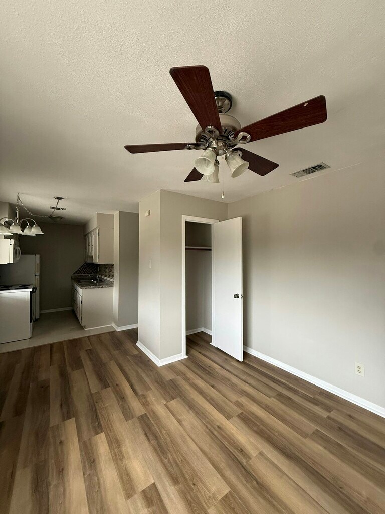 This cozy 2-bedroom, 1-bath apartment offers 615 sq. ft. of well-designed living space on a quiet street surrounded by trees. Enjoy a peaceful setting away from city noise while staying close to all that San Marcos has to offer. The bright living area and functional kitchen make everyday living comfortable and convenient. Residents also have access to a community garden space on-site, perfect for relaxing outdoors or growing your own herbs and flowers. With on-site parking and quick access to Hunter Road, this charming home combines tranquility with accessibility.