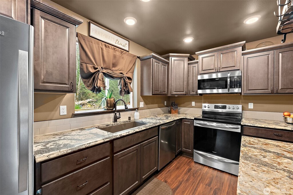Experience the best of Pacific Northwest living in this beautiful 3,255 sq. ft. home, sitting on a secluded 5-acre estate. The home features 4 large bedrooms upstairs and a main-floor office or den—perfect for remote work or a quiet study space. Enjoy stunning views of the Olympic Mountains from expansive windows. The property also includes a separate living area with its own ¾ bathroom and laundry, offering excellent flexibility for guests or extended family. Modern comforts include a high-efficiency heat pump for year-round heating and cooling. With peaceful surroundings and convenient access to nearby amenities, this home offers the ideal balance of privacy, comfort, and convenience.