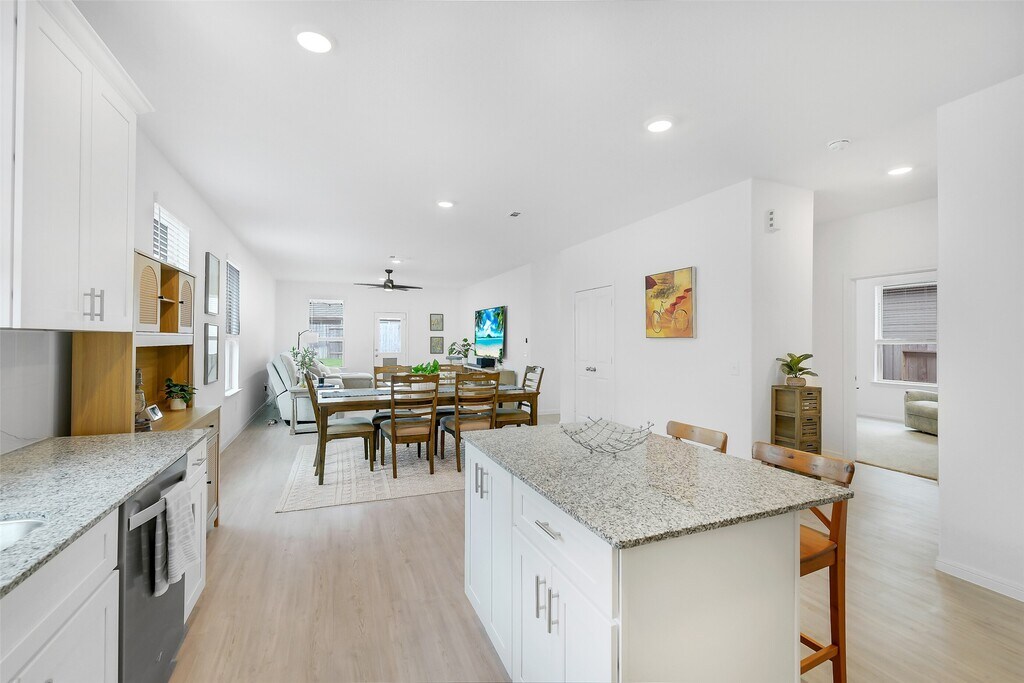 Welcome to 16910 Elm Grove Rd,a beautiful one story home situated in the vibrant community of Mavera. Features include open-concept living,high ceilings,extensive LVP flooring,4 bedrooms,2 full baths,and a covered rear patio. The kitchen is equipped with stainless steel appliances,white shaker-style cabinetry with contemporary hardware,granite countertops,and a center island with seating space. The kitchen seamlessly connects to the dining and living rooms,ideal for entertaining and family gatherings. The private owners suite offers a generous walk-in closet,soaking tub,separate shower,and dual-sink vanity. Outside,enjoy the covered patio that overlooks the spacious backyard. There is a pocket park across the street,which is just one of the community's numerous amenities that include a resort-style pool,a splash area,cabanas,and walking paths. Planned amenities that are coming soon include pickleball courts,a wiffle ball field,and outdoor biergarten. MLS# 73567217