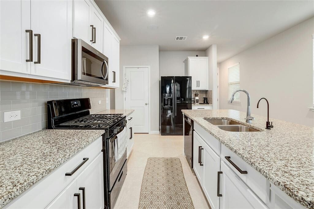 FORMER MODEL HOME! Amazing floor plan with four bedrooms and two full baths. Open floor plan with bright white kitchen cabinets. Island kitchen, with granite countertops, subway tile backsplash, and pantry closet. Large master bedroom and bath. Master bath has a walk-in shower, walk-in closet, and large counter space. Large backyard with covered back patio. A full sprinkler system makes it easy to keep the grass looking great! Ring system for extra security: front, back, and doorbell cameras. All appliances stay, including a reverse osmosis system and water softener. Walk to exemplary Pflugerville ISD schools!