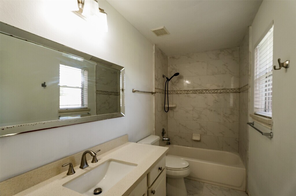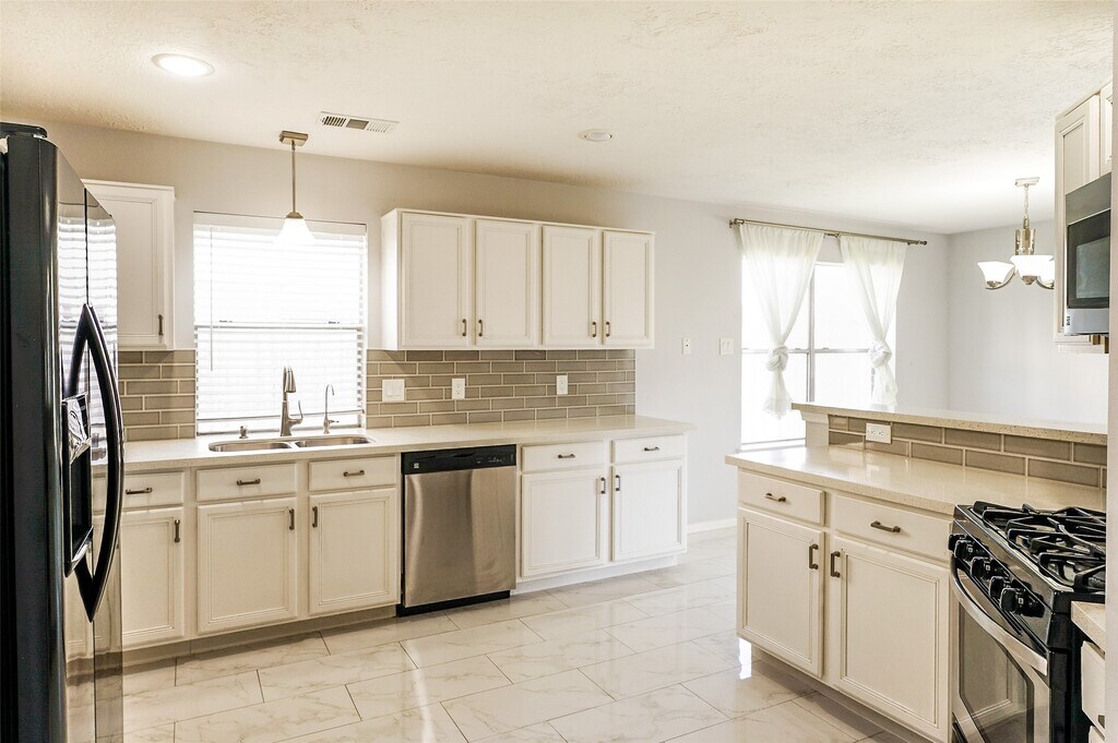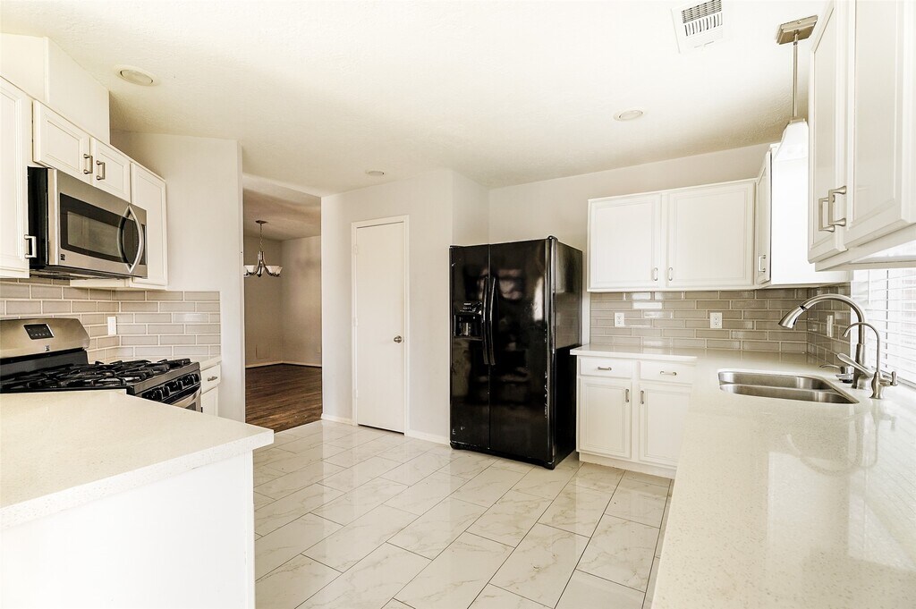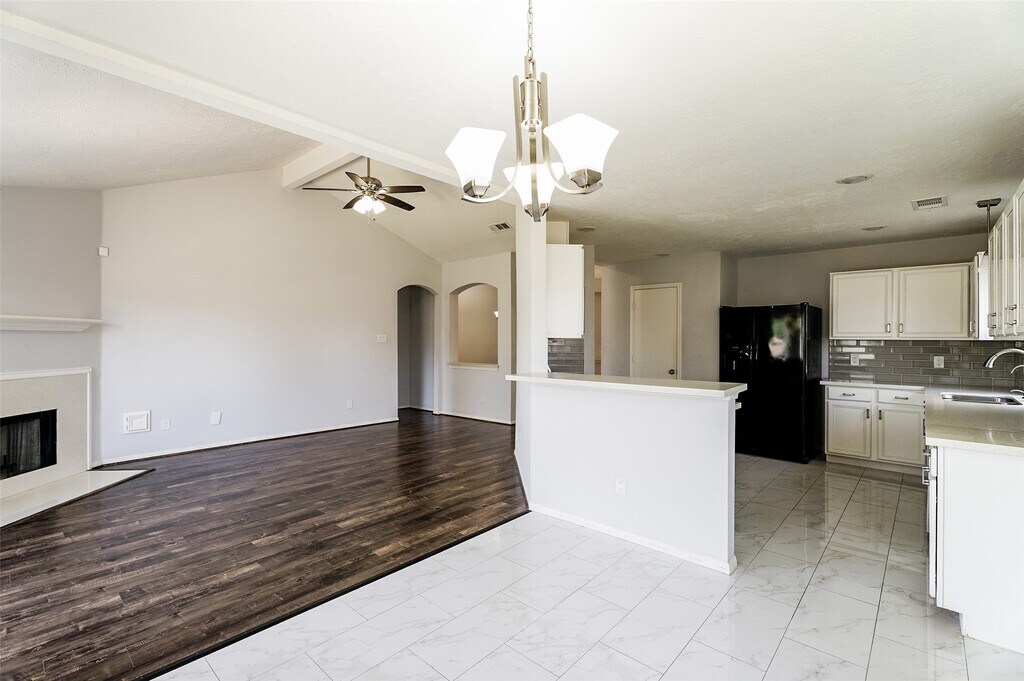 Welcome to a lovely single-story home designed for both comfort and style,perfectly situated in Sugar Land's desirable Summerfield community. This spacious 4-bedroom,2-bath residence features a thoughtful floor plan for effortless living and entertaining. The home's design flows seamlessly from the formal dining room to the family room,which features vaulted ceilings and a cozy corner fireplace. A bright,open kitchen connects to the breakfast area and family room,creating an ideal space for daily life. The private primary suite is a true retreat,complete with dual vanities,a soaking tub,and a separate walk-in shower. Throughout the main living areas,beautiful laminate flooring provides a clean,modern aesthetic that is easy to maintain. Durable,attractive tile in the kitchen and bathrooms ensures both function and style. With a generous footprint and a 2-car garage,this home offers plenty of room to spread out. This home is move-in ready. Schedule your private tour today. MLS# 74445177