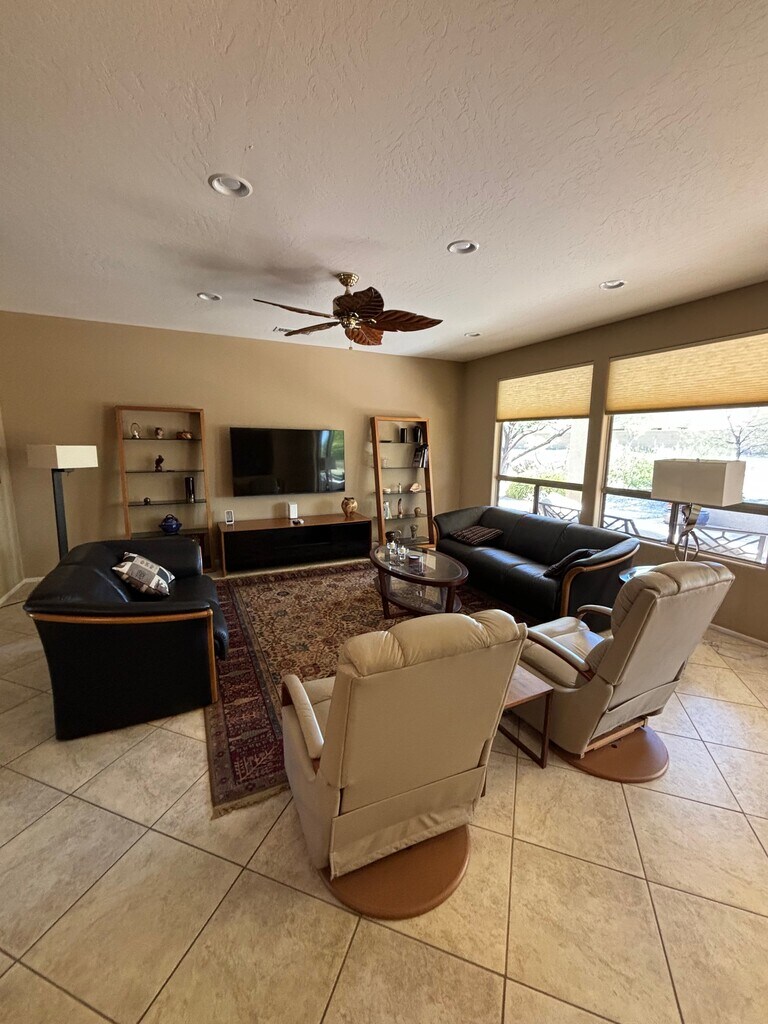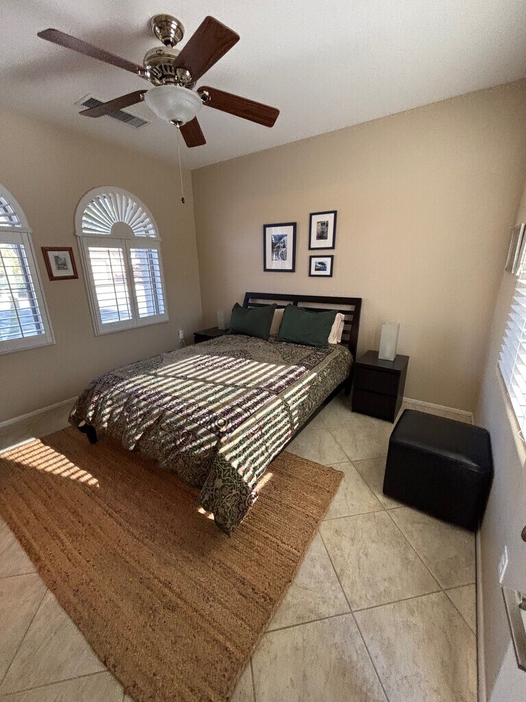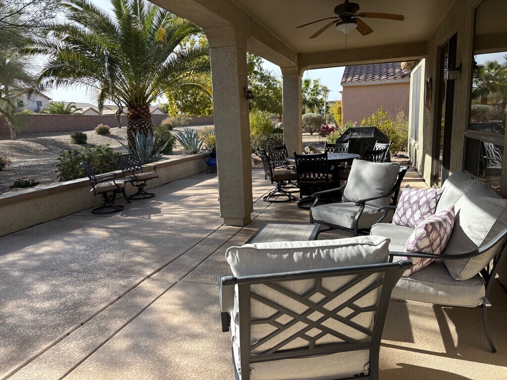 This home is available April thru December of 2026. Tastefully furnished and decorated, this beautiful single story home has 2 bedrooms and 2 full baths in the main home. The primary bedroom has a king-size bed while the secondary bedroom has a queen-size bed. The primary bath has double sinks and a beautiful walk-in shower. There is also a guest casita just a few steps across the lovely courtyard where your friends or family can have a little privacy. The casita has a queen-size bed, TV and its own bath. It is filled with all the comforts of home. The study includes desks with a printer for your convenience. The lovely south facing patio has Kool deck coating, a firepit table with seating for 6, and a propane grill. The home backs to a common area for increased privacy. The courtyard offers yet another option to enjoy the lovely Arizona weather. The 2 car garage is accessed directly from the home and there is a Recirculation Pump to get that hot water to you quickly. The Grand is a 45+ community and conveniently located to shopping, restaurants and entertainment in Surprise and the surrounding cities and just a short 45 minute drive to Sky Harbor Airport. The Grand has four 18 hole Golf Courses, two Recreation/Fitness Centers with Indoor and Outdoor Pools with Hot Tubs, a Day Spa, 22 Pickleball Courts, 11 Tennis Courts, Bocce Ball, Lawn Bowling, Walking Trails, and numerous Clubs and activities. Within the community are two full restaurants and one cafe with $1.50 soft serve ice cream! During the season there is regular entertainment for your enjoyment. If desired, renters can purchase a Renter Card. The use fees (non refundable) for a maximum of two Renter Cards per home are as follows: 1-3 month lease = $200 per person. With this Renter Card the renter may use both Fitness Centers, join clubs, buy tickets to events, and play golf at the resident rate. All renters have access to the Grand Cafe, Angela's Restaurant and Maple and Rye all located within the community. Renters who do not choose to sign up for the Renter Card will find that there are numerous fine public golf courses, tennis/pickleball facilities, and fitness centers in the area. You will find a Renter's Manual at the home for your reference. We have tried to include everything you could want to know about the property. We are always available to answer any questions you may have before or during your stay. Please do not hesitate to reach out for anything. This is a 100% smoke free home. And absolutely no pets! You will be responsible for any damage to the property caused by you or your party during your stay.
