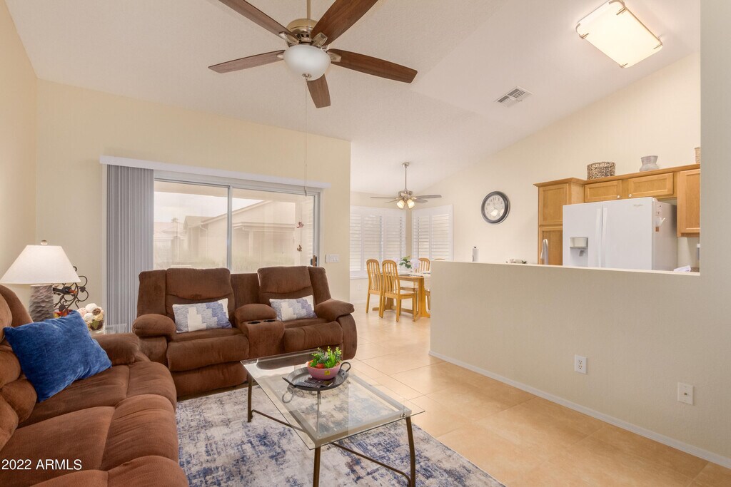 Don't miss this Sunbird 55+ Community Vacation Rental. Stay for a month or longer,depending on your plans. This super 2 bedroom/2bathroom home has it all. The coveted north facing backyard porch and outdoor living room. Curl up on the outdoor sofa with a good book or enjoy friends for evening cocktails. You can dine alfresco and grill too. Inside this well appointed home you will find an open concept dining,living and kitchen combination. The kitchen is well stocked with a pantry,and attached breakfast room for 4. The living room has a giant TV that can be seen from everywhere and super comfy reclining furniture. The bedrooms are just down the hall. The Master is large and features a queen bed,tv,desk/chair,walk in closet large tv and en-suite bath with a walk in shower The 2nd bedroom has a queen and sizable closet with easy access to the hall bath just next door. The laundry is in the garage,the garage has space for 1 car and the driveway can fit two additional cars. Super fast WIFI is available as well as streaming cable TV. Amenities include but are not limited to Pickleball,shuffleboard,golf,events,pools,gym,bocce ball and more. Meet friends,enjoy activities. Do not miss booking Sunbird,year round as it is an excellent choice. GOLF CART available with this rental for $450 a month. **Activity card fee due upon entry into clubhouse** SunBird Golf Resort is known as the most friendly and active community in the area! We have a variety of terrific facilities and amenities for all to enjoy. SunBird also has many fun social and exciting activities for all interests. Over the past few years we have spent well over 2 million dollars updating our recreational facilities and equipment. One of our goals at SunBird is to keep our facilities and amenities continually updated as new trends,interests,and technology are always changing. This ensures SunBird as a place for both the newer and established residents and guests to enjoy. SunBird has a small town atmosphere feel as people wave to each other within the Community and neighbors become friends. We are confident that you will want to become part of our beautiful community and lifestyle it has to offer.