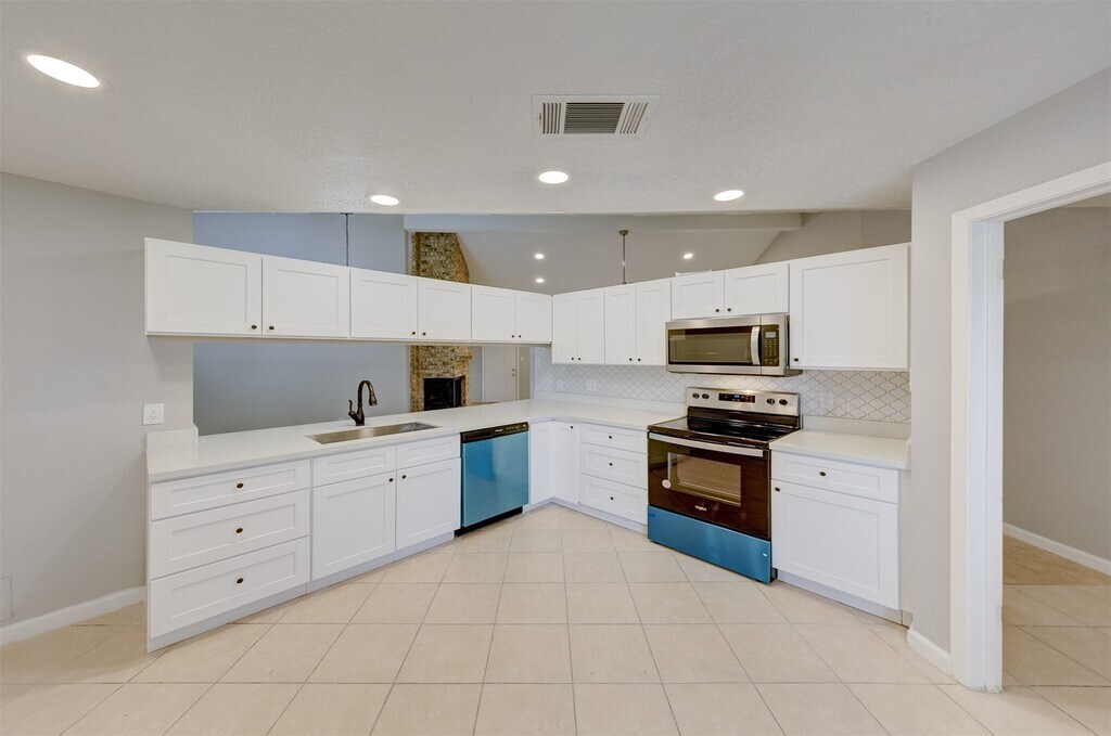 This four-bedroom home with tile throughout,has a spacious living room with a split floor plan great for entertaining. The remodeled kitchen has soft close cabinets and gorgeous countertops. There is an enclosed patio in the back and a nice size primary bedroom. MLS# 31647580