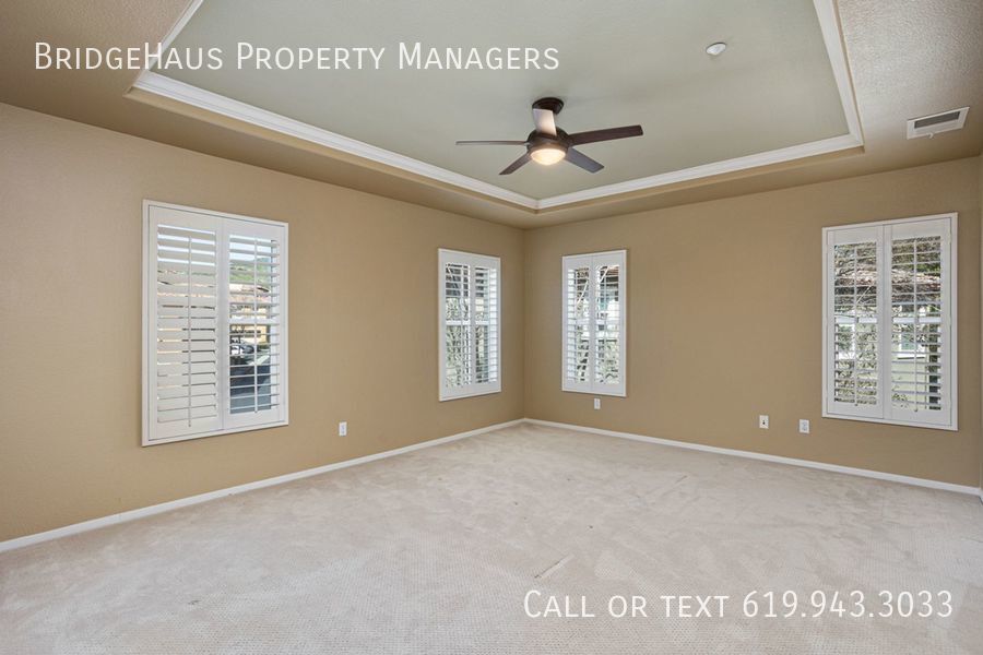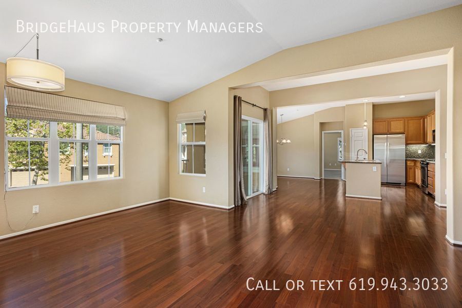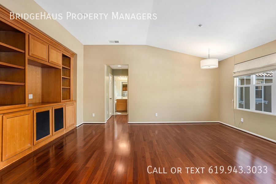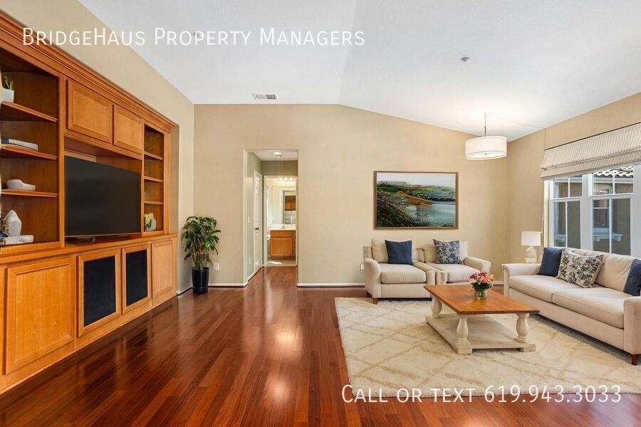 Experience modern living in a beautifully designed loft-style one-level townhome located in the heart of San Elijo Hills! This stunning rental features an open concept layout combining kitchen, living room, and dining room spaces. With 2 enclosed bedrooms on opposite ends of the home, each with their own bathrooms, experience privacy and comfort as you configure your living space to your needs. In addition, in-unit laundry makes life convenient and hassle-free. The home is equipped with built-in storage in the living room, master closet, and garage, with a two-car garage complete with epoxy floor and workbench. Enjoy the unit's prime location at the end of the road, which is shared with just 2 other units, providing unobstructed access to your home. The engineered hardwood living spaces, window shutters, covered balcony, and front porch that's ideal for plants showcase the home's luxurious design. The kitchen island is perfect for preparing meals, and with a 25 cu ft side-by-side fridge, you can enjoy hassle-free cooking and storage. Don't miss the opportunity to call this incredible residence your new home! BridgeHaus Property Managers, INC CA DRE #02143972 Brief Summary Of Rental Criteria - Household must make at least 2.5 times the rent in income. - Applicants must have a minimum credit score of 650. - Each person over the age of 18 must complete an application and pay a $42 screening fee. - You must be willing to sign a 12-month lease. - We score each household based on their income, credit score and rental history. What You Might Have A Question About - Monthly Rent: $3,350 - Security Deposit: $3,350 - Pets: Small Dogs are accepted. ($500 pet deposit is required ). - In unit laundry - Attached 2 Car Garage - Central AC and Heat. Community Jacuzzi Community Pool None Two Car Garage