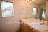 Great home in Arbor Ridge neighborhood! Home features a den and half bath on the main level with open sight lines from living room to kitchen with plenty of cupboard space. Upstairs you'll find two spacious bedrooms, one with a built in desk and both with good sized closets. Master bedroom highlights tray ceilings, walk in closet and attached bath with double sinks and step in shower. Guest bath and laundry room with washer/dryer can also be found on the bedroom level. Home is complete with fenced back yard + patio, A/C and attached garage. Easy commute to Hillsboro, Beaverton and HWY 26. No pets and no smoking, thank you!