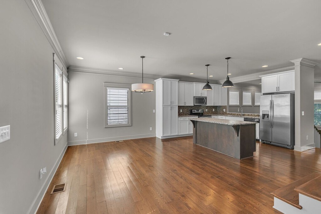 Modern 3BR/2.5BA townhouse in Wedgewood-Houston with 2,018 sq. ft. The open floor plan includes hardwood floors, a bright living/dining area, and a granite/stainless kitchen with a large island. Sliding doors open to a fenced backyard with patio. Upstairs, the primary suite features vaulted ceilings, a walk-in closet, and dual-vanity bath. Two additional bedrooms share a full hall bath, alongside a sitting area and upstairs laundry. The main level also offers a welcoming entry and half bath. Additional highlights include a covered front porch, private driveway with extra street parking, and natural light throughout. Located minutes from Downtown Nashville, this home offers easy access to 8th Avenue South, Belmont and Vanderbilt Universities, the Nashville Fairgrounds, and popular local dining, breweries, and galleries. Everyday conveniences like Publix, Kroger, coffee shops, and nearby parks are just around the corner, with quick connections to I-65 and I-40.