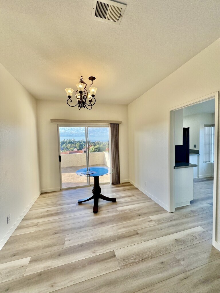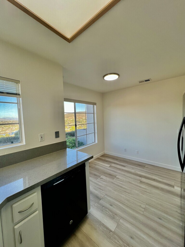 Lake San Marcos Condo- Renovated 2 bedroom/ 2 Bath Condo with an office in the Panorama Complex. Views from the living room, kitchen, Dinning room and Primary bedroom. Sit outside and enjoy the lake or mountain view from one of your to private patios. Full size washer/dryer hook ups in unit, 2 car garage and brand new AC unit.