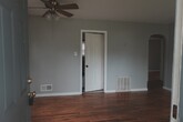 Welcome to this charming 2-bedroom, 1-bath ranch-style home perfectly situated on a spacious corner lot, the home provides extra outdoor space. This cozy retreat features beautiful hardwood floors throughout, adding warmth and character to every room. The open living space is bright and inviting, with ceiling fans in key areas to keep you comfortable year-round. Ideal for first-time tenants, downsizers, or anyone seeking a low-maintenance lifestyle, this home offers both comfort and convenience in a desirable location. Available now – inquire today to schedule a private tour! All adults must apply and pass tenant screening. Minimum income requirement is 3x the monthly rent, no evictions. No pets. Call Leasing at - Ext:4, to schedule a viewing. Apply now!