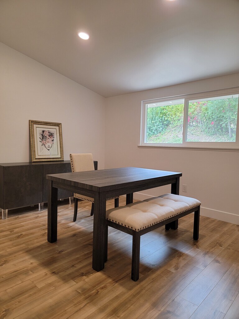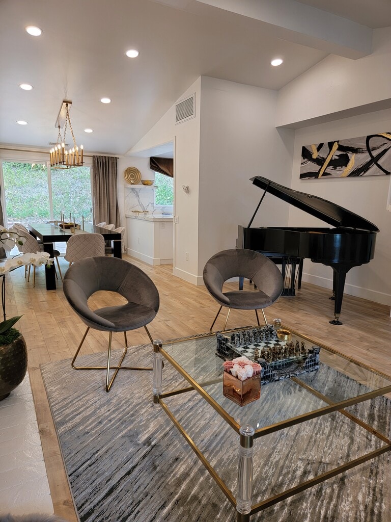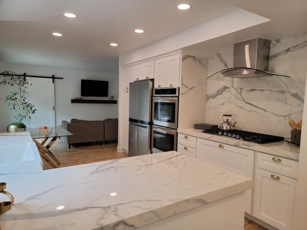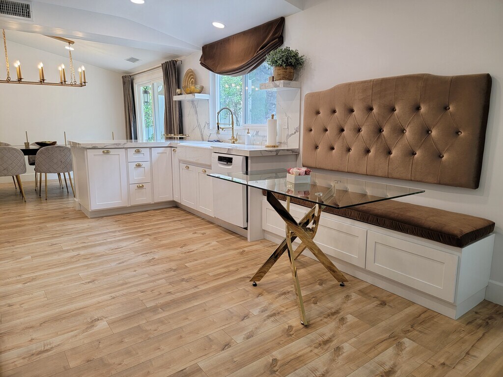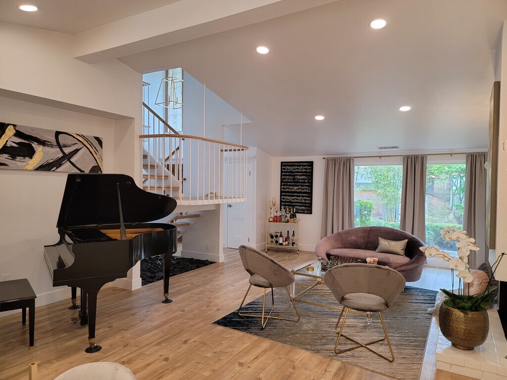 South of the Boulevard in the desirable Encino Hills, this beautifully remodeled Harlan Lee mid-century home has been thoughtfully updated from top to bottom. Ideally located just minutes from Mulholland Drive, offering easy access to the Westside, as well as Ventura Boulevard’s premier shopping and dining. Situated within the highly acclaimed, award-winning Lanai Elementary School District. A striking double-door entry opens to a high-ceiling foyer highlighted by a massive picture window that floods the space with natural light. The bright, open floor plan features a spacious living room with fireplace, vaulted ceilings, wood floors, and expansive windows, seamlessly flowing into the formal dining area. The stunning open kitchen includes a built-in dining nook and modern finishes, perfect for both everyday living and entertaining. An additional first-floor bonus space serves beautifully as a TV room, home office, or den. A floating staircase leads upstairs to three generously sized bedrooms, including the primary suite with high ceilings and a walk-in closet. The exceptionally private backyard offers a serene, low-maintenance retreat with generous side yards. Additional highlights include a spacious laundry and pantry room, and a two-car attached garage with direct entry. This is a beautiful opportunity to enjoy mid-century charm with modern luxury—welcome home. (Realtor Commission Paid)
