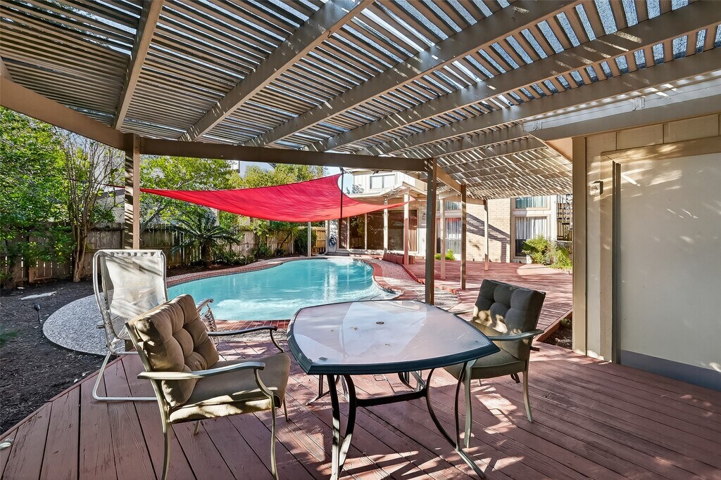 READY TO MOVE IN. This artist-designed home is just minutes from Highway 59 and Highway 6. Offering three to four bedrooms plus a game room,it features a classically beautiful pool and multiple living areas,including a home office. The first-floor primary suite has separate his and her closets,and the study/library offers custom built-ins with a nearby guest powder room. Gracious and elegant throughout,the home highlights quality finishes,generous storage,and high ceilings in the formal rooms. A floor-to-ceiling fireplace and refined lighting add timeless charm. The gated driveway leads to a detached garage,and the home is in a mature neighborhood with its own pool,tennis courts,and access to Oyster Creek. Excellent schools and a convenient location make this property truly special. MLS# 31278708