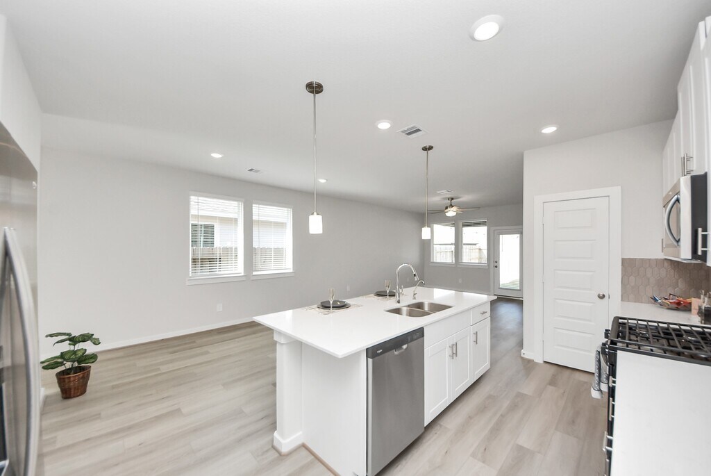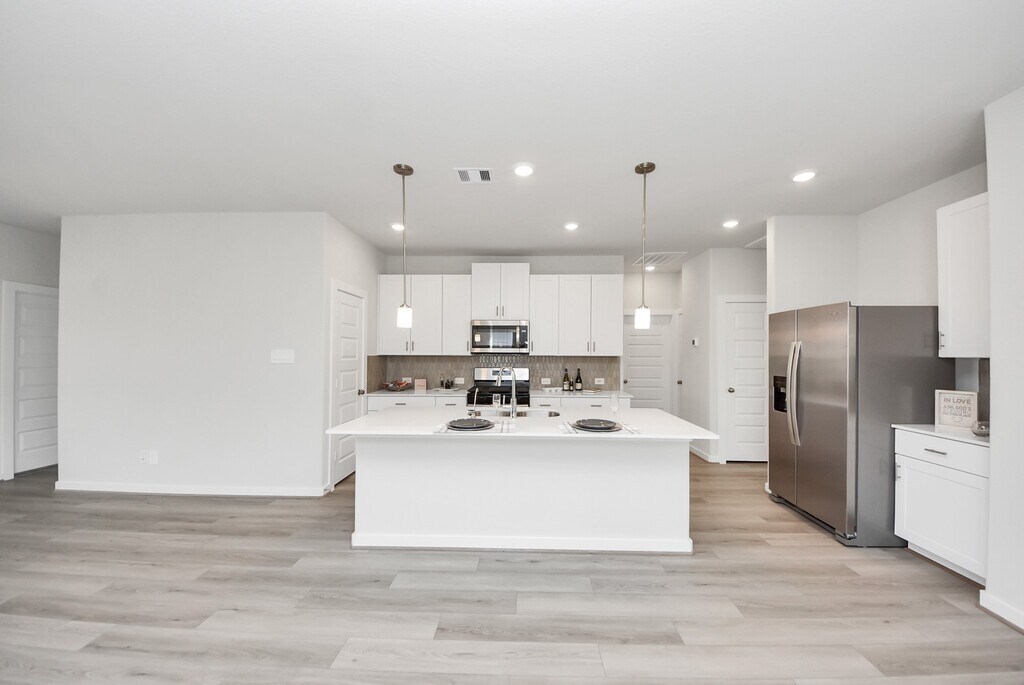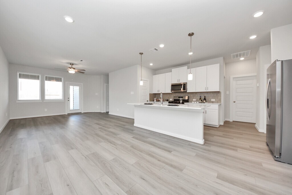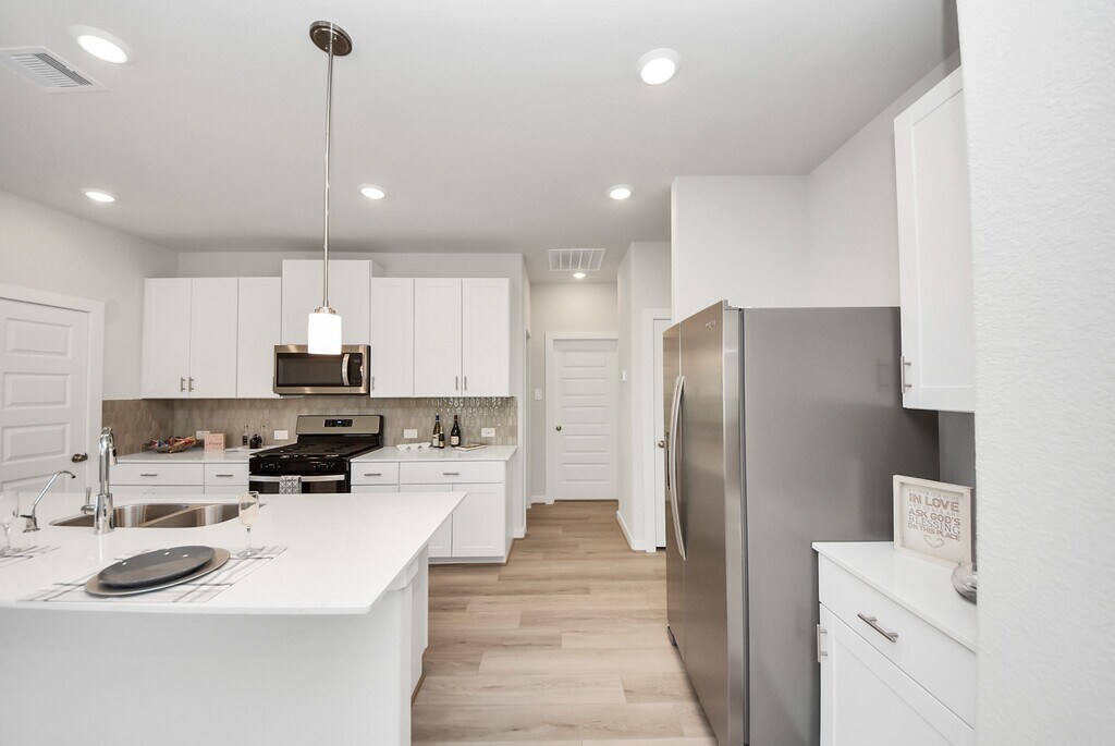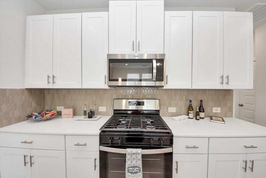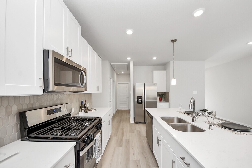 MOVE-IN READY - BRAND NEW - Never lived in one-story 3-bedroom,2-bath home with 2-car garage. Open-concept layout with kitchen island,kitchen open to family room,and great natural light throughout. ALL APPLIANCES INCLUDED: refrigerator,washer,dryer,microwave,dishwasher,and range — truly turnkey and ready for immediate move-in. Private primary suite with double sinks,walk-in shower,and walk-in closet. Secondary bedrooms are well sized with carpet and blinds. Energy-efficient features help keep LOW utility bills,including Energy Star appliances,LED lighting,high-efficiency HVAC,tankless water heater,and Low-E windows. Enjoy a fully fenced backyard,perfect for relaxing or entertaining. Mavera offers resort-style amenities including a pool,splash pad,playgrounds,pocket parks,and walking trails,with convenient access to major highways,shopping,and dining. Act fast — applications reviewed in the order received! MLS# 91370496