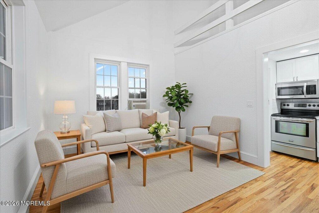 Discover modern loft-style living right in the center of Red Bank. This bright one-bedroom residence offers an airy,open layout with dramatic ceiling heights and oversized windows that flood the space with natural light. Recently refreshed hardwood floors,Kitchen upgrade,plus brand-new carpeting in the bedroom. The flexible loft-style bonus room creates a comfortable and private escape,overlooking the lively streetscape below. One designated parking space in a private lot is included for added convenience. Step outside and enjoy all that downtown Red Bank has to offer,top-rated dining,boutique shopping,art galleries,and live entertainment,including the renowned Count Basie Center for the Arts. Nature lovers will appreciate nearby parks,scenic walking paths,and easy access to the Navesink River for kayaking,picnics,or peaceful waterfront strolls. Blending contemporary style with an unbeatable location,this one-bedroom + loft presents a fantastic opportunity to enjoy the energy and lifestyle of downtown Red Bank. Schedule your private tour and experience it for yourself. Laundry on premises. Images and digital renderings are for illustrative purposes only and may include virtual staging or furnishings that do not represent the property's current condition.