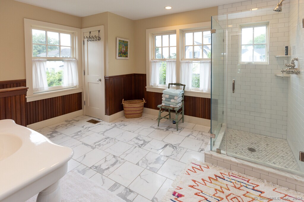 Call for Availability - Fantastic Opportunity to Rent for the month of July in Fabulous Fenwick! This charming water-view traditional Fenwick Cottage offers Fenwick's unique lifestyle: beach, tennis courts, yacht club and famed golf course. Boasting 4 bedrooms and 4 baths plus a huge third-floor rec room/bunk room space, the home offers over 3,700 sq. ft. of comfortable beach living. Open floor plan living room with walls of windows and French door access to a spacious back porch. A beautiful cook's kitchen with Carrera marble countertops and quality appliances, open to a spacious dining area featuring a huge farmhouse table with access to the porch and side yard. ~ Walls of windows, loaded with light! The primary bedroom is located on the second floor with water and golf course views, wall-to-ceiling wainscoting, French door access to a private balcony overlooking the manicured lawn to Long Island Sound. The primary bath features gorgeous finishes, plus a private dressing room or office space. Three more charming bedrooms, each with its own unique features and two lovely baths complete the second floor. The third floor rec room measures 25'x36' and offers plenty of play space, bunk beds, and ample room for all to enjoy. The home has a first floor laundry and mudroom with access to garage, hardwood floors throughout, oil warm air heat . . . stunning! Offered fully furnished, utilities included except electricity. Pets possible with owner approval. MLS# 24094936