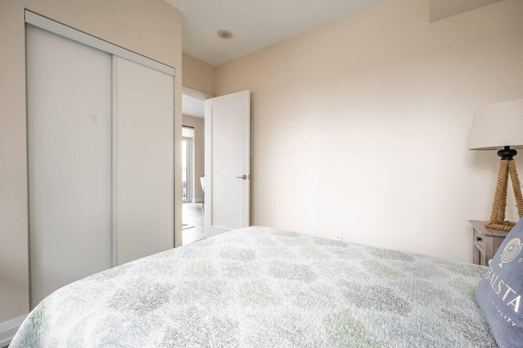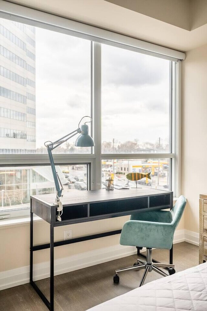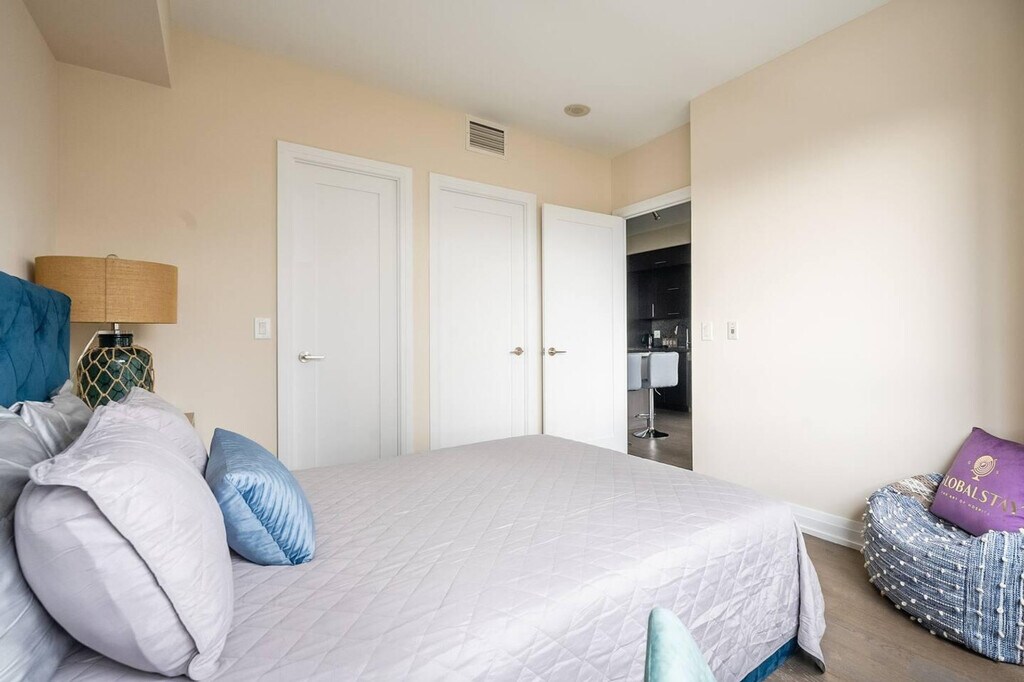 Experience the elegance of this stylish 2-bedroom apartment with a queen bed and a den featuring a single bed. The living room includes a sofa bed for one person, and there are two bathrooms. Located in a modern skyscraper in Downtown North York, this unit offers amazing views and free parking. Enjoy direct indoor access to two subway lines from the building, placing you in a prime shopping area with entertainment facilities, bars, restaurants, and a big supermarket. Downtown attractions are just a 15-20 minute subway ride away. This comfortable suite has everything you need to feel at home. It features a fully functional kitchen with supplies such as tea, coffee, a kettle, coffeemaker, and toaster. The apartment also includes a washer and dryer with supplies, and two bathrooms equipped with towels, shampoo, conditioner, body wash, a hair dryer, and other toiletries you may have forgotten. Pets of small and middle size are allowed in the apartment for a fee of $10 per night for one pet. You should carry your pet in common areas and confirm the opportunity prior to booking if you plan to stay with pets. Travel cribs for babies 0-18 months and bed rails are available for $5 per item per night, and should be booked in advance. The third bedroom is a den, a small room with a twin bed inside. Guests must be 18 or over to check in. Guests whose names or ID do not match the information given are not allowed into the building. These are mandatory requirements, and if you do not agree to provide this information, a refund cannot be guaranteed. Smoking inside incurs a penalty, and pets must be carried in common areas.